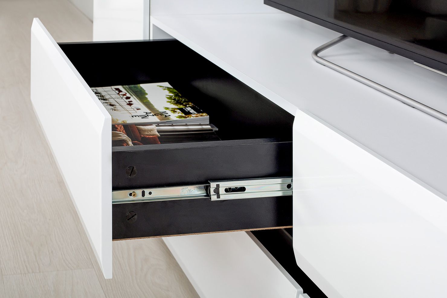 бесшумным, открывается за край.