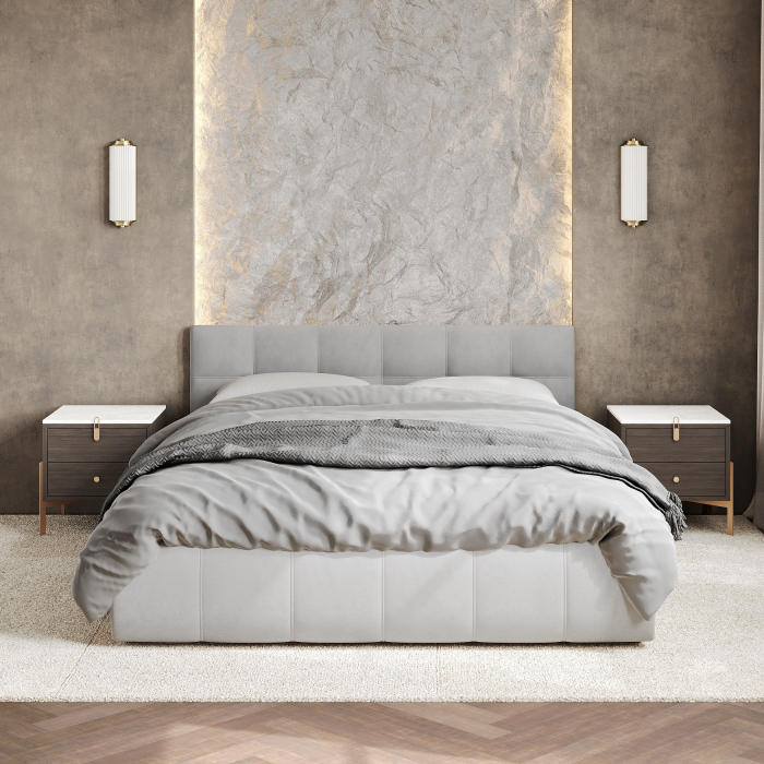 Особенностью данной модели является мягкое изголовье, которое не только придает кровати эстетический вид, но и обеспечивает дополнительный комфорт при чтении или просмотре телевизора.