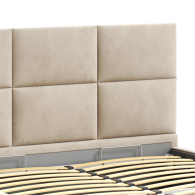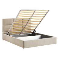 Кровать оснащена подъемным механизмом на газ/лифтах и вместительным бельевым ящиком, что обеспечивает дополнительное пространство для хранения постельного белья и других вещей. Это позволяет экономить место в спальне и поддерживать порядок.