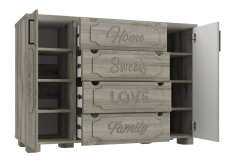 Система мебели Дримстар включает в себя отдельные самостоятельные модули, сочетающие в себе функциональность и уникальность дизайна. С базовым набором модулей легко оформить интерьер любого помещения. Все модули можно комбинировать между собой. Фасады украшены надписями, которые придают моделям оригинальный вид. Коллекция Дримстар поможет вам в оформлении стильного и современного интерьера.