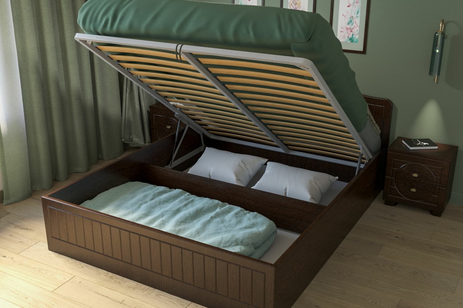 Материал корпуса/фасада: ЛДСП/МДФ. Цвет корпуса/фасада: венге/орех шоколадный. Размеры модуля (в/ш/г) в мм: 1130х1672х2070. Основание кровати: ламели с подъемным механизмом. Особенности: короб для хранения постельного белья.