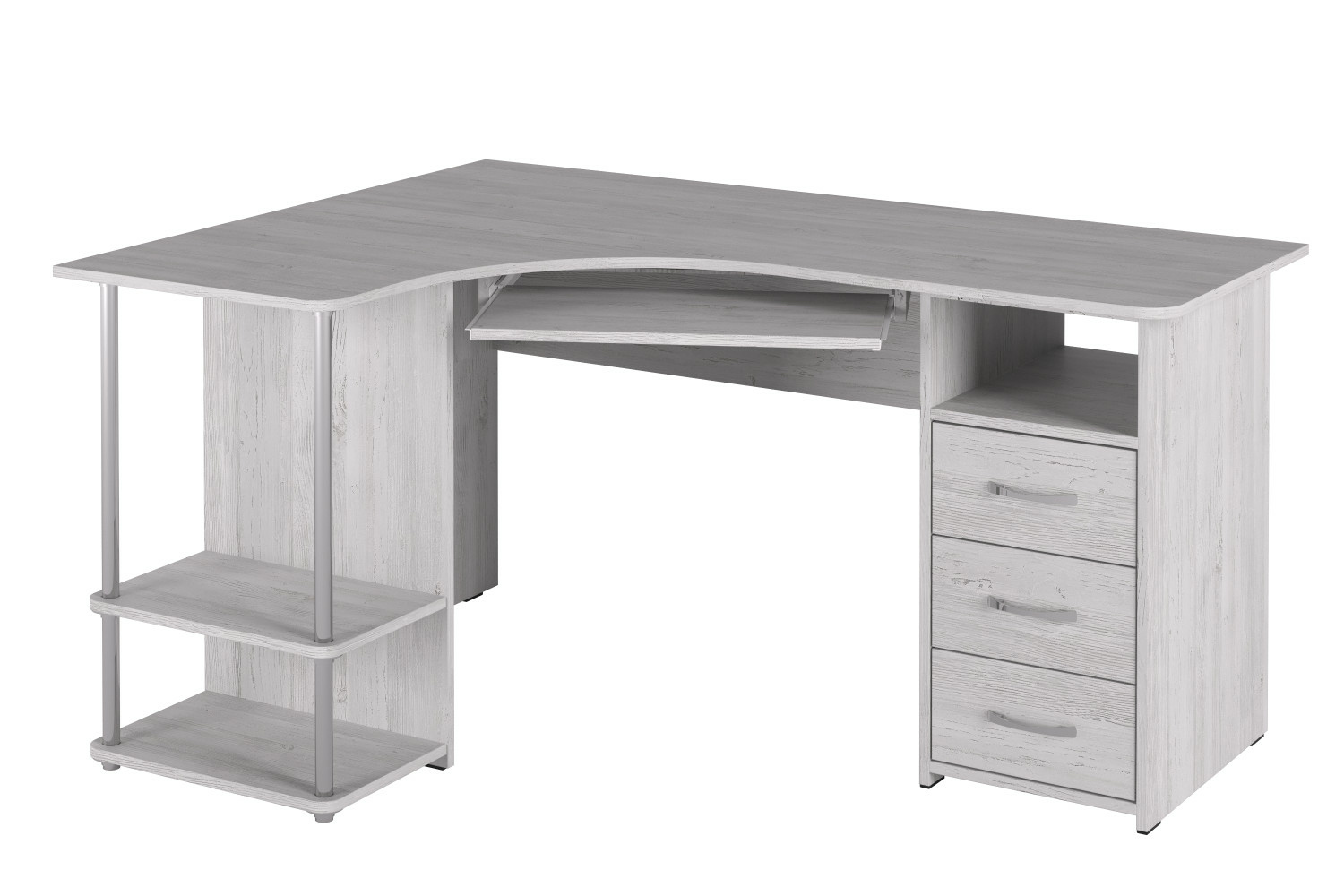 Нужен был большой угловой стол цвета венге, без всяких надстроек сверху, местом для системного блока (что бы не стоял на полу) и полочкой для клавиатуры. Этот стол стал просто идеальным выбором, и сейчас, после сборки, очень мне нравится, но очень сильно расстроила полочка для клавиатуры. Она еле держится! Для сбора стола нанимала мастера, он сказал, что просчет на производстве и полку нормально не закрепить. Она часто выпадает (ролики не дотягиваются полностью до направляющих ), нормально не выезжает и вообще скорее всего не долго проживет. Если бы не косяк с полкой то все было бы отлично, но теперь придется как решать этот вопрос.