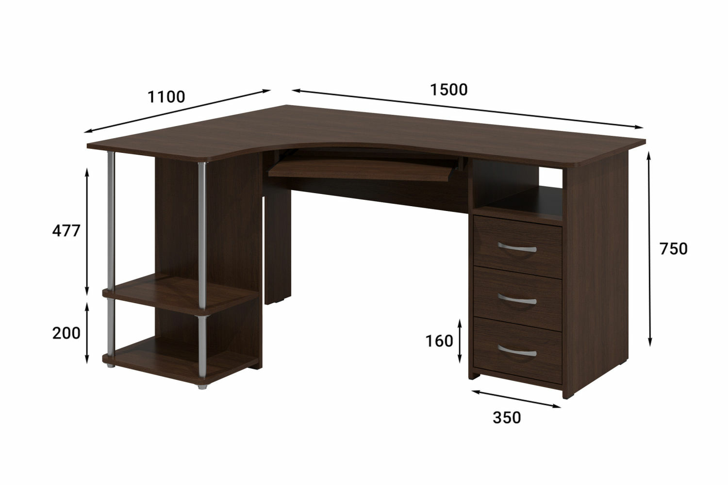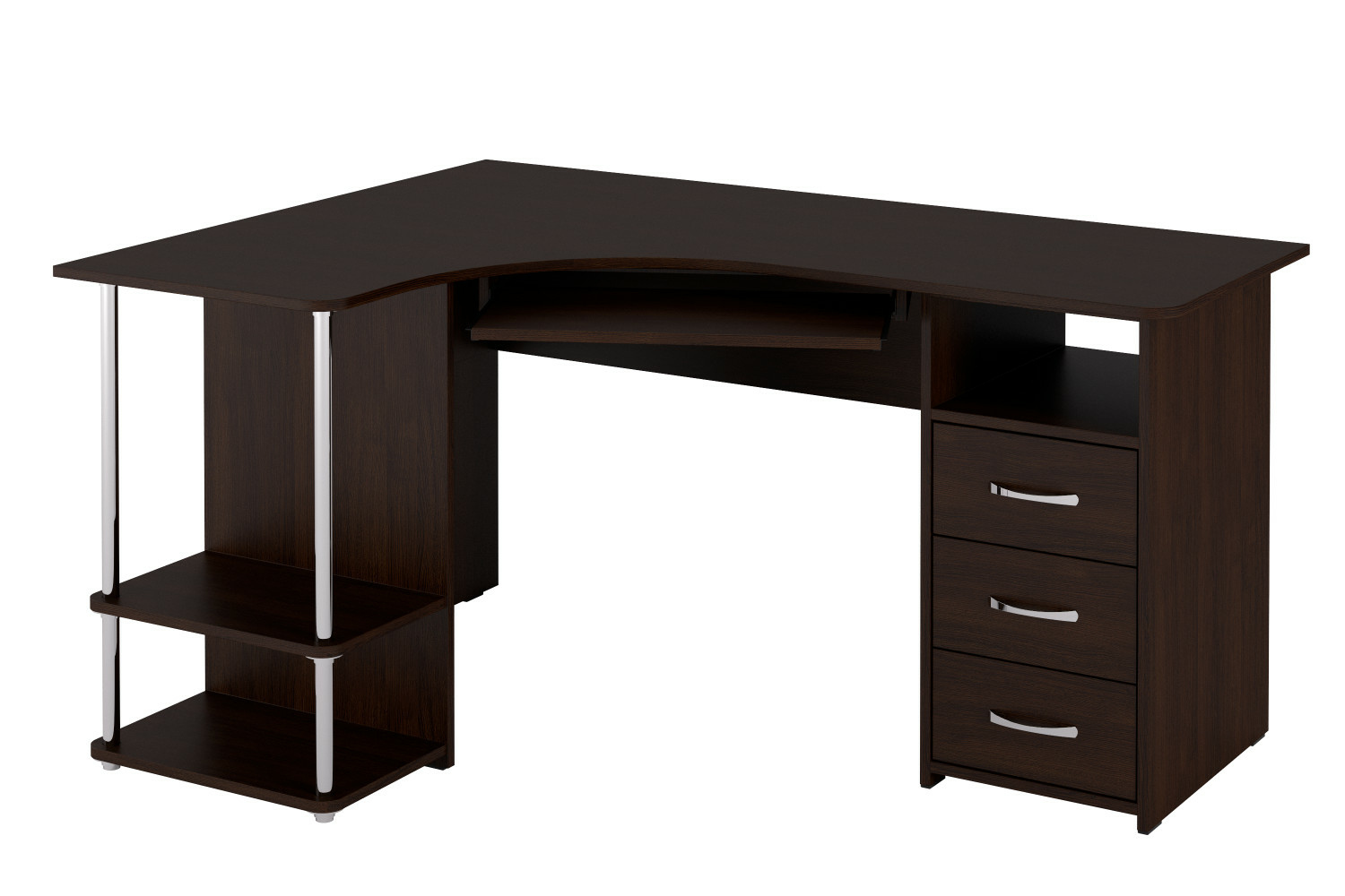 Нужен был большой угловой стол цвета венге, без всяких надстроек сверху, местом для системного блока (что бы не стоял на полу) и полочкой для клавиатуры. Этот стол стал просто идеальным выбором, и сейчас, после сборки, очень мне нравится, но очень сильно расстроила полочка для клавиатуры. Она еле держится! Для сбора стола нанимала мастера, он сказал, что просчет на производстве и полку нормально не закрепить. Она часто выпадает (ролики не дотягиваются полностью до направляющих ), нормально не выезжает и вообще скорее всего не долго проживет. Если бы не косяк с полкой то все было бы отлично, но теперь придется как решать этот вопрос.