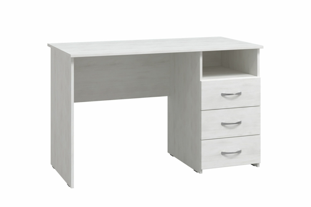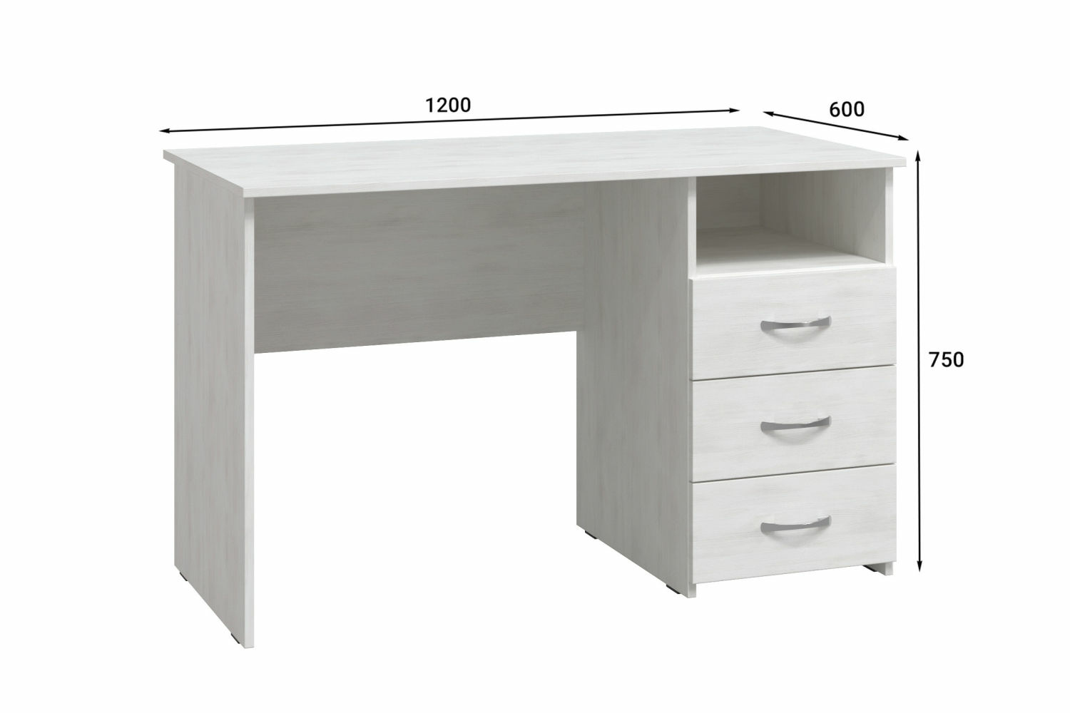 Стол письменный предназначен для эксплуатации в офисах, образовательных учреждениях, а также домашних условиях. Оборудован нишей и тумбой с 3 ящиками. Тип направляющих ящиков: роликовые. Регулируемые опоры позволяют компенсировать возможные неровности пола.