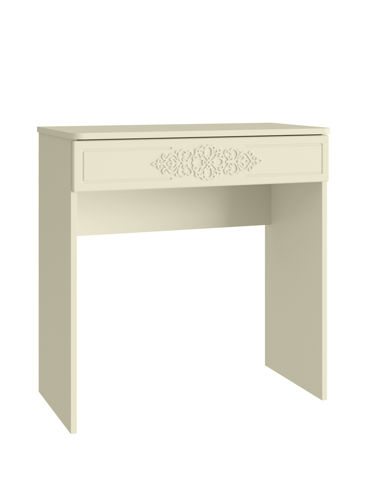Туалетный столик - неотъемлемая часть спальни или женской комнаты. Каждая девочка, девушка или дама хочет иметь собственное пространство, свой уголок красоты, для того чтобы привести себя в порядок, нанести макияж, удобно и компактно расставить свою косметику и парфюмерию, аккуратно сложить украшения и аксессуары. Столик имеет один выдвижной ящик на телескопических направляющих без доводчиков. Мебель изготовлена из качественной ламинированной ДСП 16 мм. В оформлении фасадов МДФ применяется уникальная технология нанесения объемного узора (3-D).