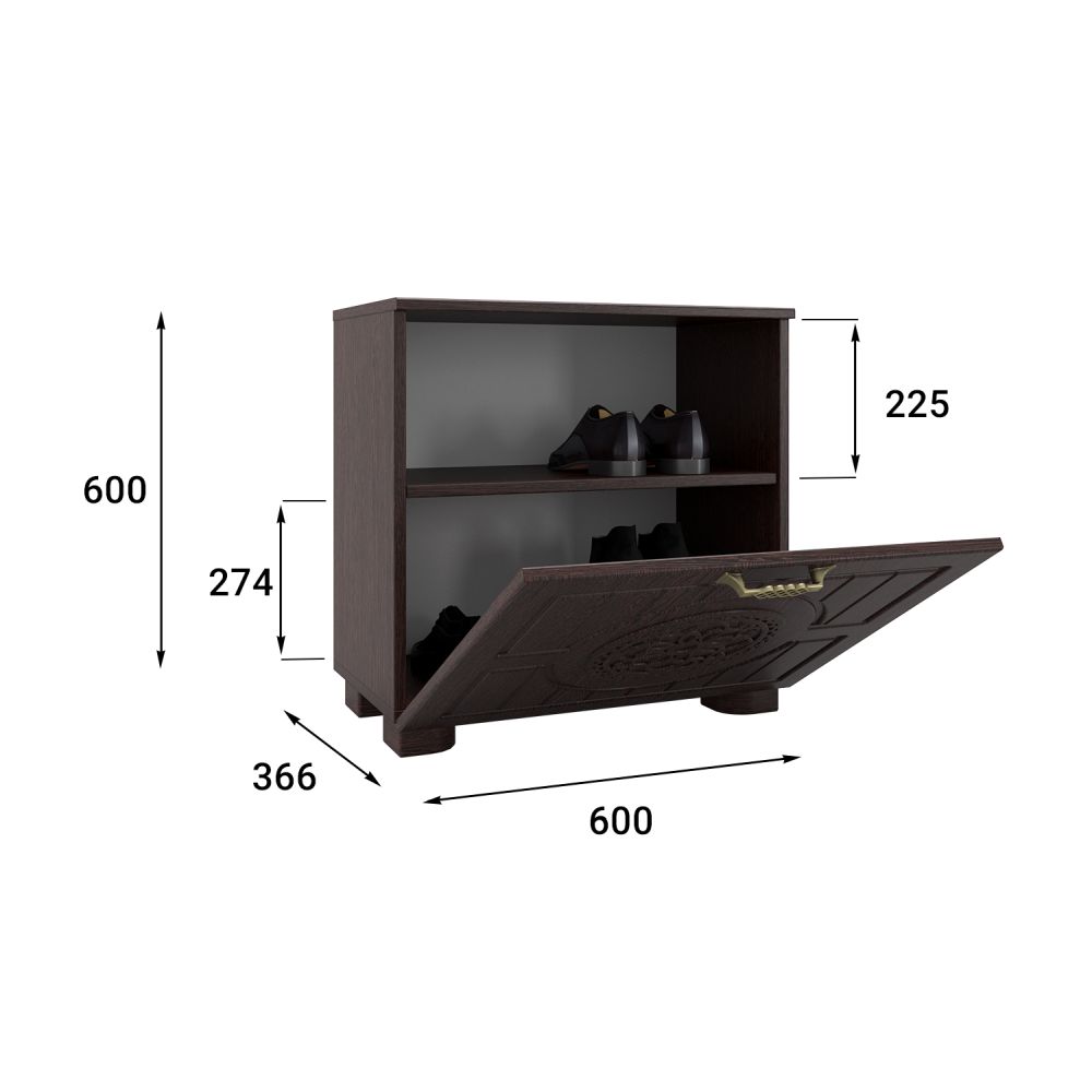 Материал корпуса/фасада: ЛДСП/МДФ. Цвет корпуса/фасада: венге/орех шоколадный. Размеры модуля (ш/в/г) в мм: 600х600х366.
