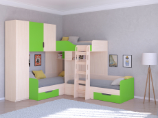 Отзывы о Столплит Кровать двухъярусная Трио/1 Дуб молочный Салатовый