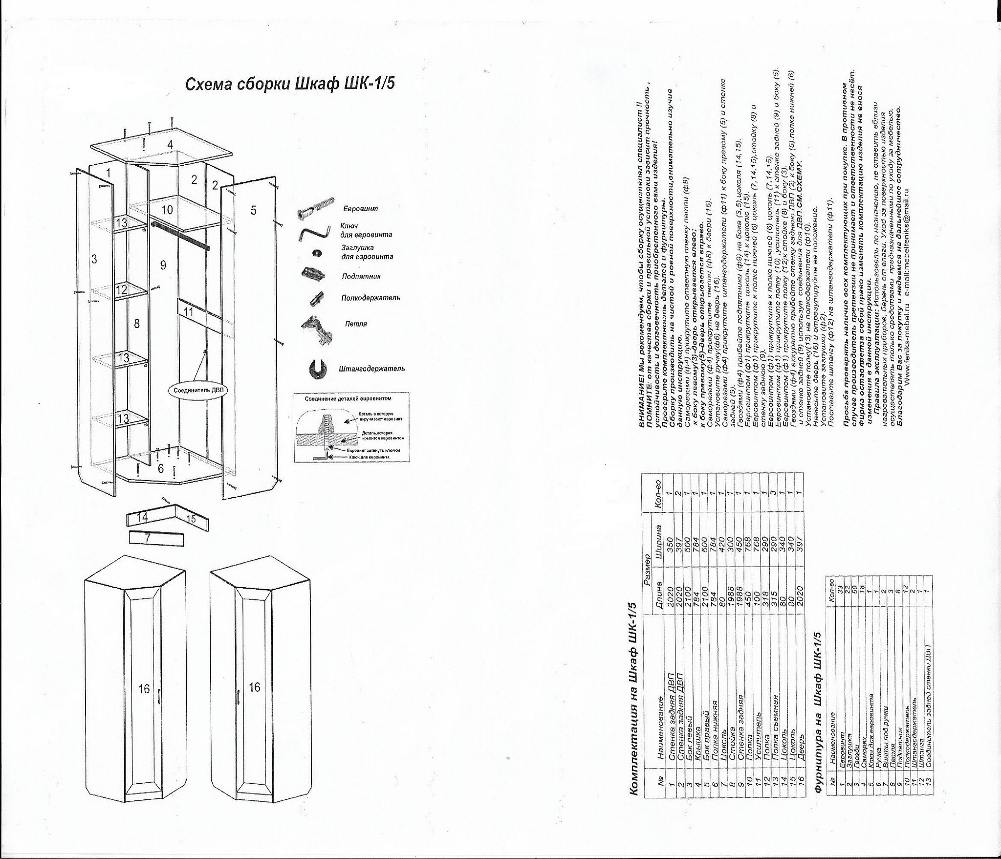 Шкаф угловой ШК-1/5 выполнен из Ламинированной ДСП высшего качества с насыщенным цветом. Фасад рамочный обработка МДФ укреплены металлическими скобами и силиконом изнутри.Дополнительно оснащён зеркалом.Шириною 80 см., данный угловой шкаф имеет слева отделение с пятью секциями разделенными полками. Справа большая секция для одежды со штангой и верхняя полка над ней.При необходимости можно поставить сверху еще и антресоль ШК-1/3 ,что увеличит высоту шкафа еще на 40 см.
