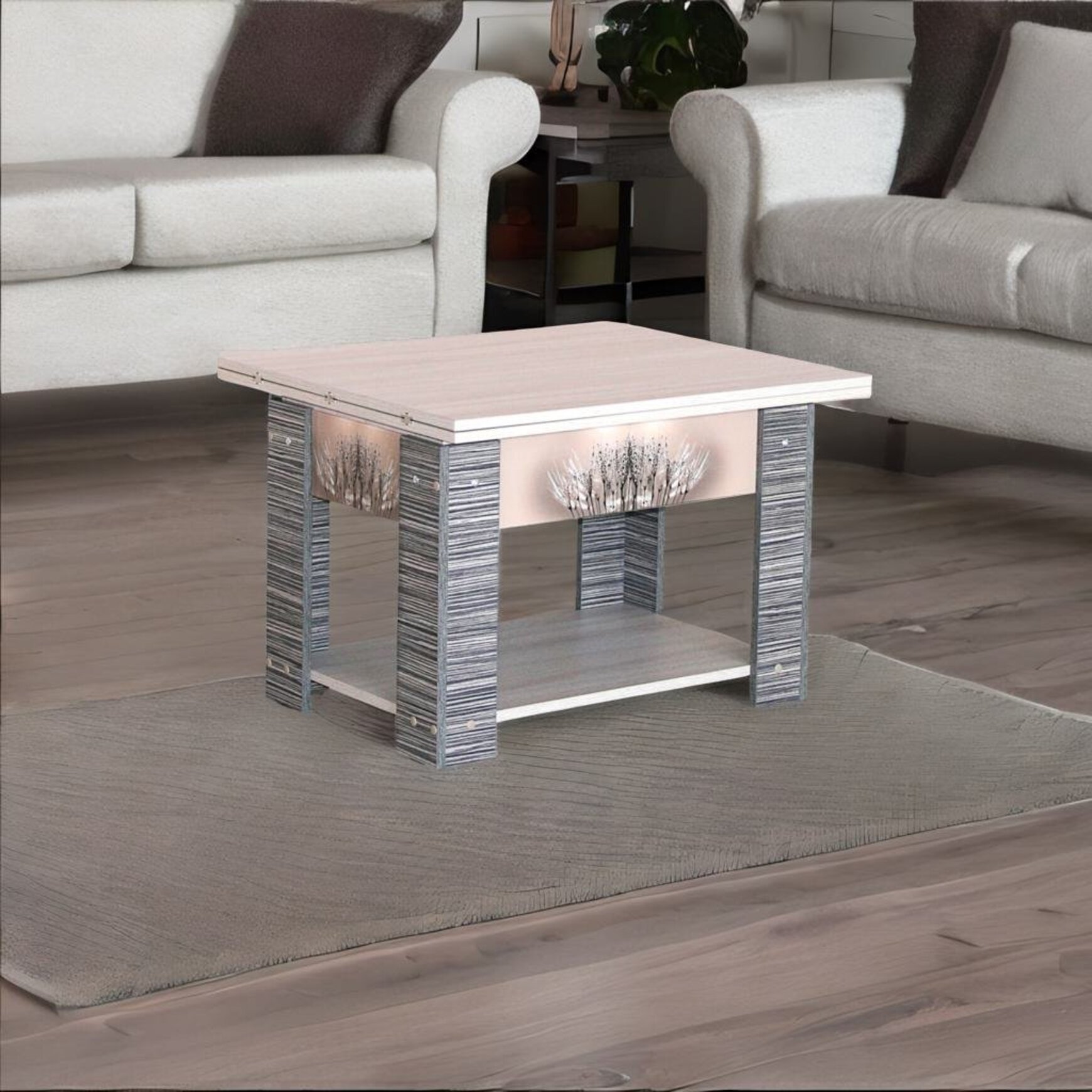 Элегантный журнальный столик стильно разнообразит как классический, так и современный интерьер гостиной или спальни. Царга модели декорирована изящными рисунком, который делает столик уютной деталью в обстановке.Стол-трансформер-7 идеален для современной меблировки. В сложенном виде не занимает много места и удобен для ежедневного использования. Качественный механизм трансформации превращает журнальный стол в обеденный за несколько секунд. Стол трансформер-7 на все случаи жизни.Внизу расположена полка для журналов, пультов и прочих мелочей.
