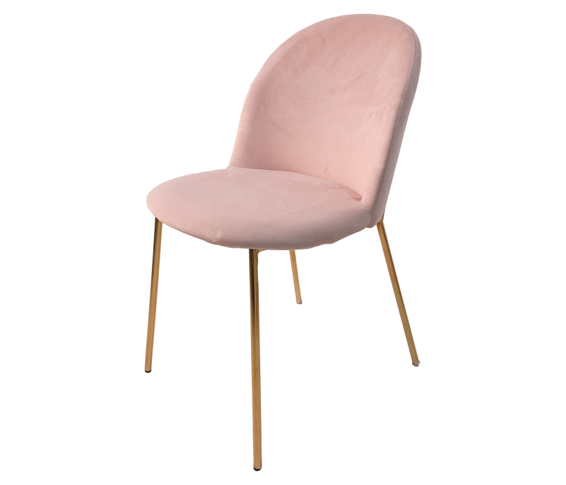 Стул модного пудрового оттенка с золотыми опорами, с закругленной спинкой. Обивка - вельвет. Опоры металлические, окрашены золотой порошковой краской. Размер - 440*550*820мм.