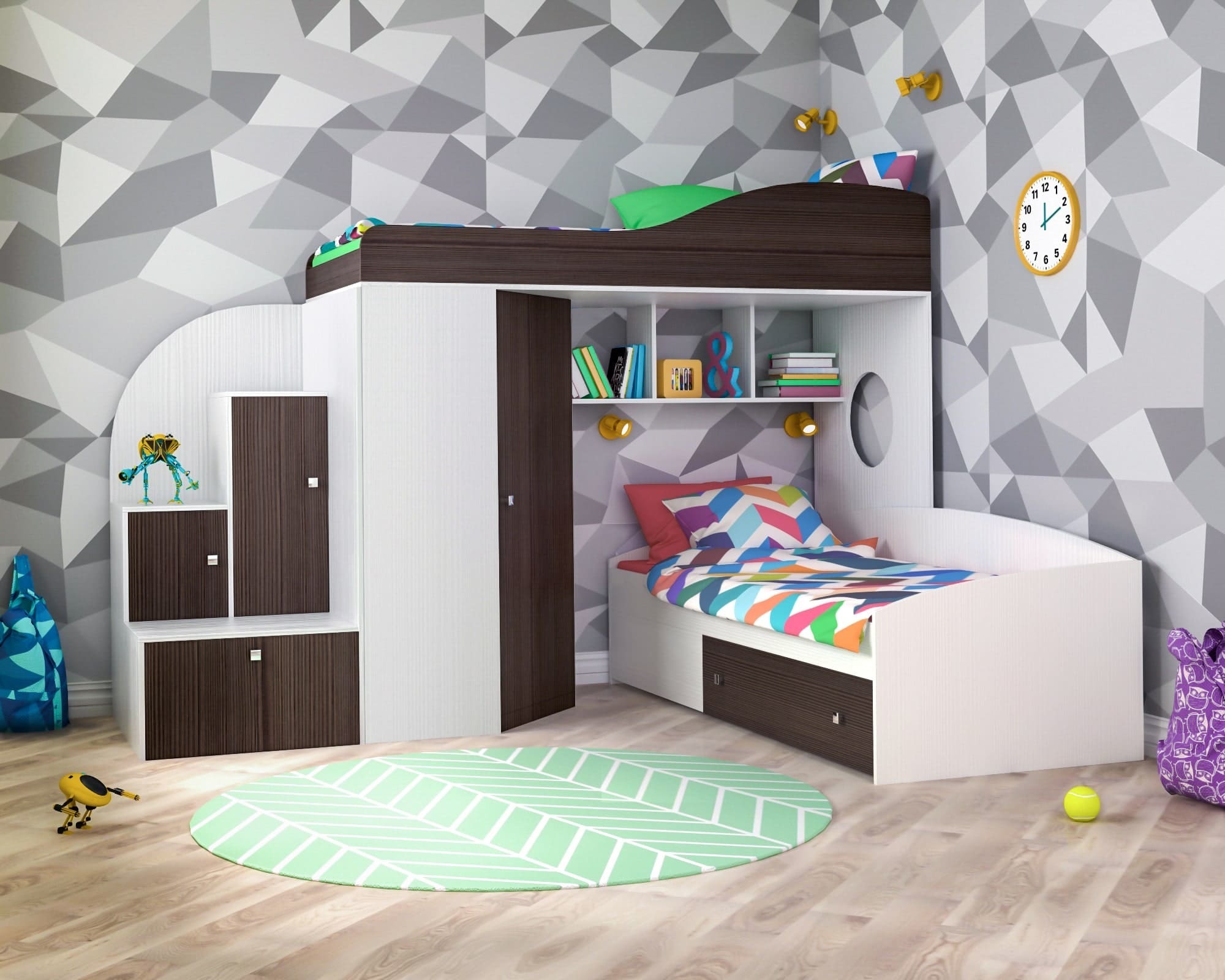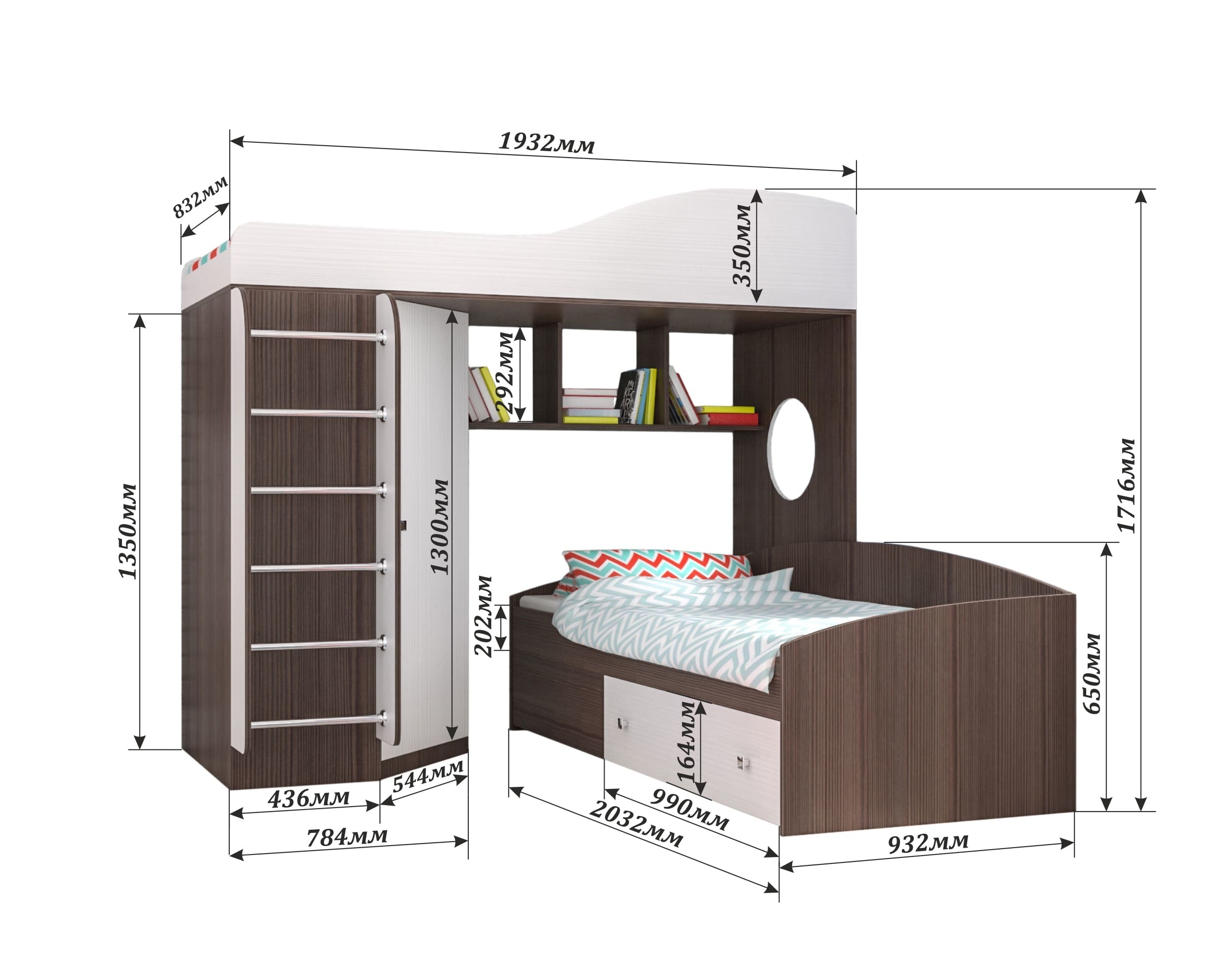Кровать чердак «Кадет 2» с металлической лестницей ЯРОФФ – прекрасное решение для обустройства детской комнаты в Москве в любой квартире, вне зависимости от планировки. У кровати два удобных спальных места и приставная металлическая лестница надежной и крепкой конструкции. Навесные полки, встроенный угловой шкаф с полками позволяет удобно разместить постельное белье и одежду, и также другие мелочи при необходимости.