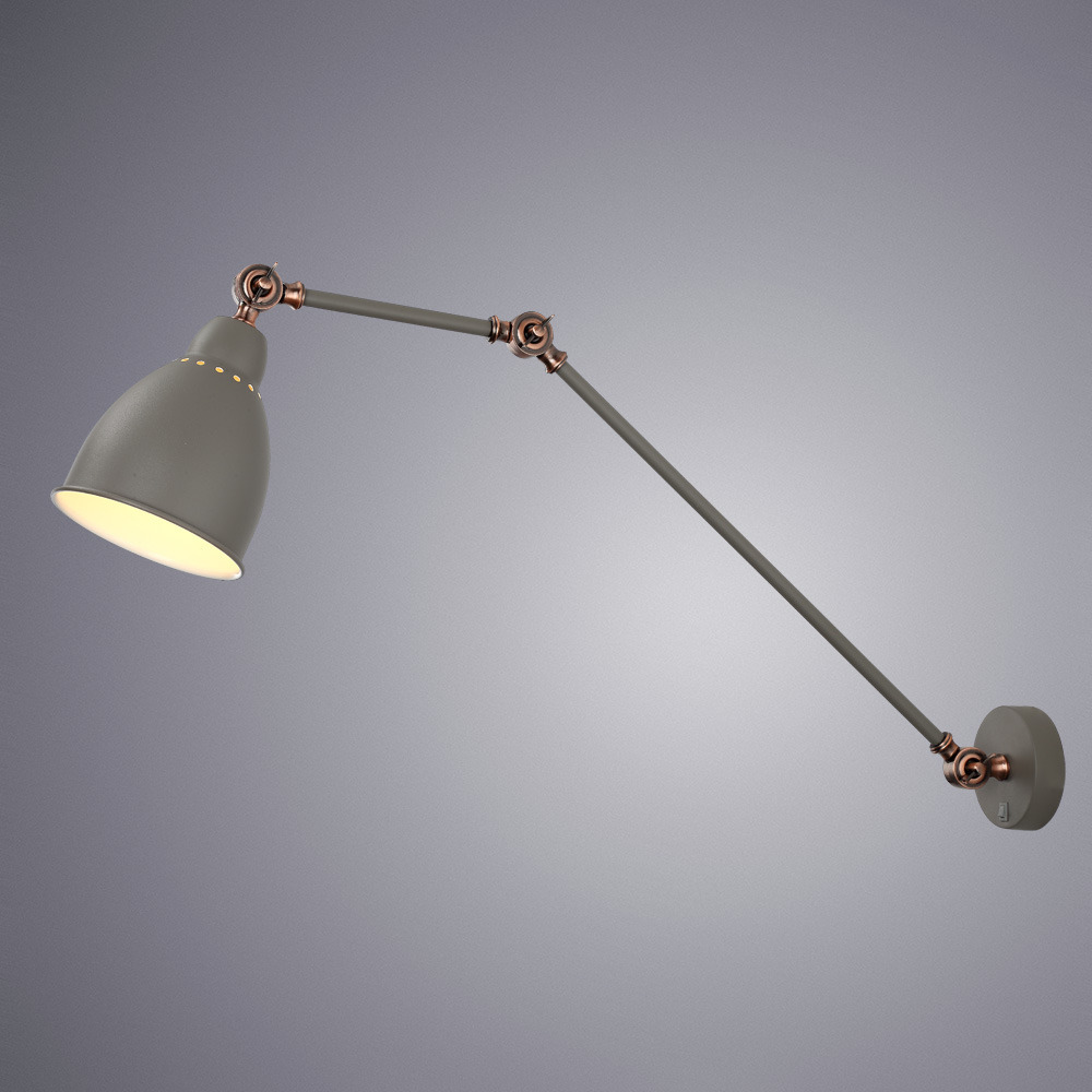 Бра Arte Lamp серии BRACCIO. Подчеркнет стиль помещения. Размеры 74x15x23 cm. Параметры пылевлагозащиты IP — 20. Форма конусная. Использует 1 лампу с цоколем E27. Площадь освещения охватывает 3 m². Идеально подходит для спальни или офиса. Страна происхождения бренда — Италия. Вес с упаковкой 1.2 kg. Характеристики: Характеристики: Материал: Металл. Мощность лампы: 60W. Напряжение: 220V. Патрон: E27. Стиль лампы: Современный. Количество патронов: 1. Лампы в комплекте: Нет.