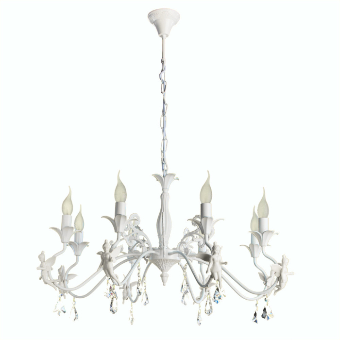 Люстра Arte Lamp A5349LM-8WH серии Angelina. Подчеркнет стиль помещения. Размеры 74x74x40 cm. Параметры пылевлагозащиты IP — 20. Форма изогнутая. Плафон белого цвета, а материал/цвет арматуры металл/белый. Использует 8 ламп с цоколем E14. Площадь освещения охватывает 18 m². Идеально подходит для гостиной. Страна происхождения бренда — Италия. Вес с упаковкой 4.5 kg. Характеристики: Материал: Мощность лампы: 40W. Напряжение: 220V. Патрон: E14. Стиль лампы: Прованс. Количество патронов: 8. Лампы в комплекте: Нет. Световой поток: 450 Лм. Крепеж: на крюк. Для натяжных потолков.