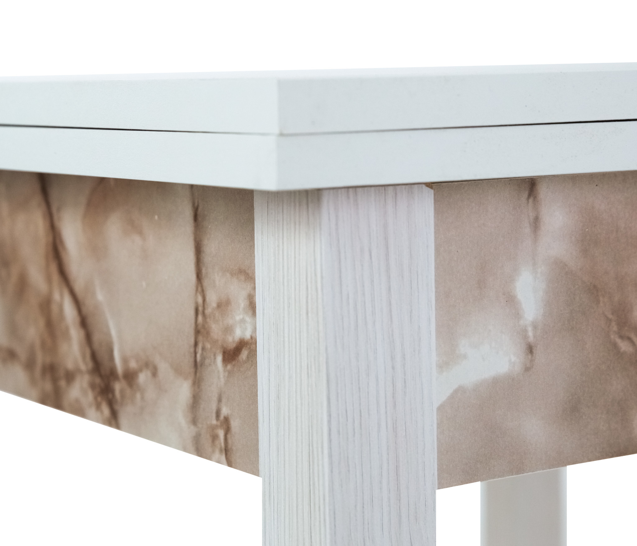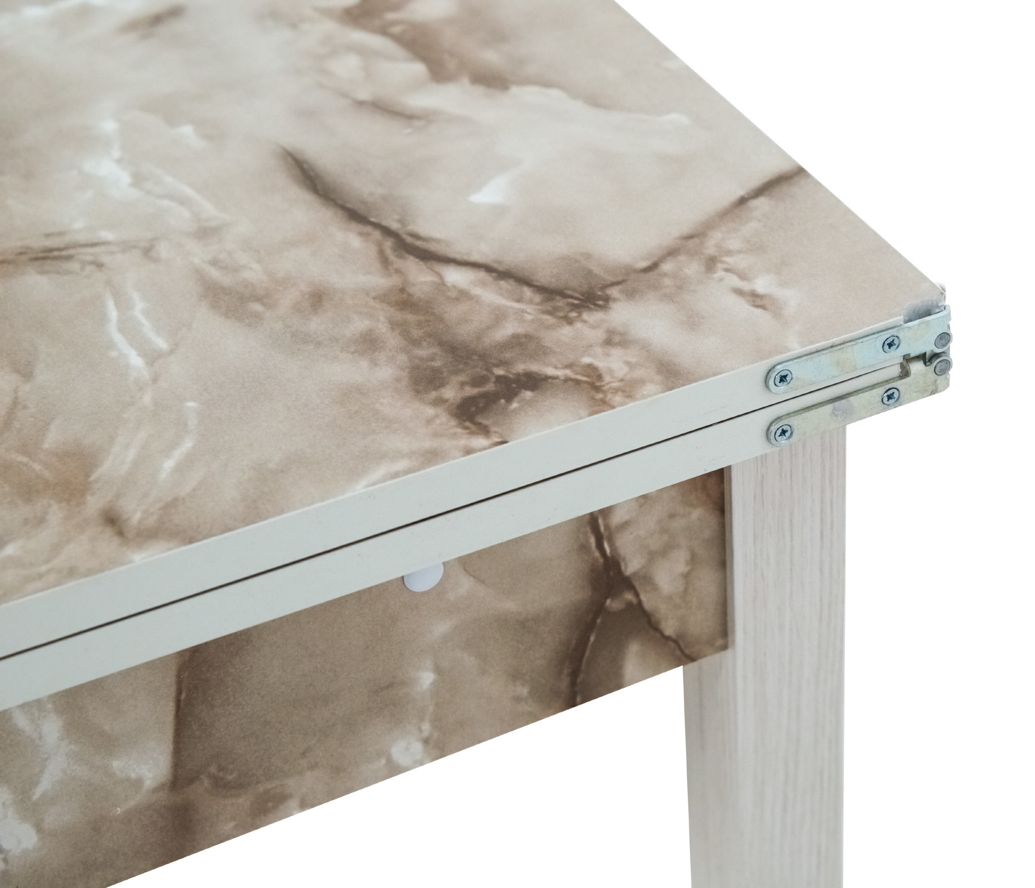 Искали стол в маленькую комнату для работы онлайн. Оказалось, что этот стол даже удобнее компьютерного. Пользуемся в нераскладном виде, хватает места для монитора, клавиатуры, колонок и остаётся пространство для письма. Ножки того же цвета, что и столешница, это было приятной неожиданностью. На сайте ножки у стола другого цвета.