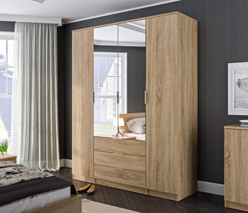 Отзывы о Столплит Николь СБ-2595/1 Шкаф 4х дверный с зеркалами Дуб Сонома