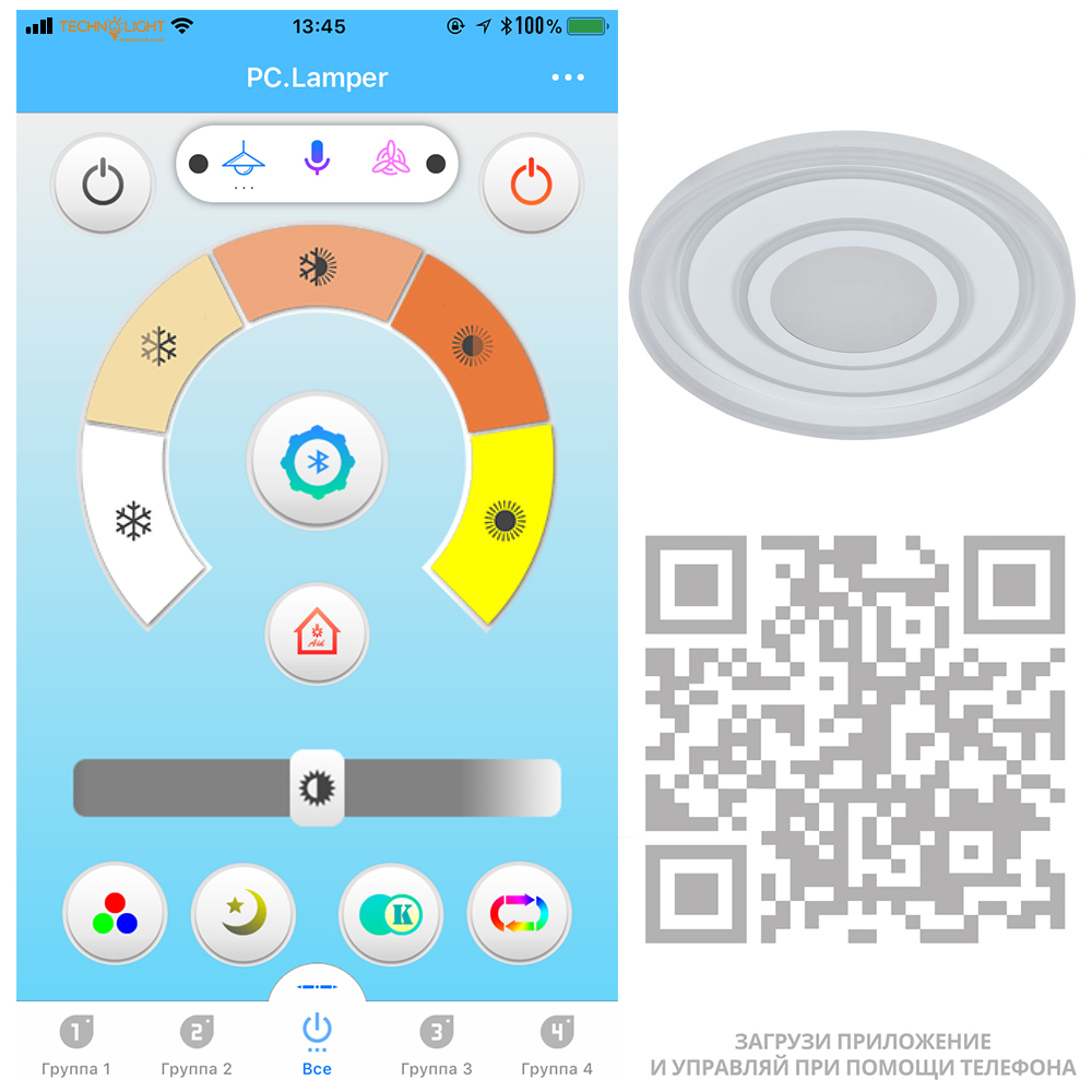 Яркая и необычная коллекция MULTI-SPACE привлекает своим дизайном, а техническое оснащение отвечает самым последним тенденциям на рынке светотехники. Многообразие форм дополнено множеством режимов, которые удобно переключаются при помощи мобильного приложения или ПДУ. Светильники имеют возможность плавной смены цветовой температуры и яркости. Различные детали могут гореть одновременно как теплым, так и холодным светом. При включении RGB ленты она, отражаясь от встроенных зеркал, создает эффект глубинного и бесконечного потока света, а для создания более камерной атмосферы светильники оснащены режимом ночника. Благодаря потолочному креплению светильники подойдут даже в помещения с низкими потолками. Характеристики: Материал: металл/пластик. Мощность лампы: 146W. Напряжение: 220V. Патрон: LED. Стиль лампы: Современный. Лампы в комплекте: Да. Световой поток: 7100 Лм. Цветовая температура: 2700-6500К. Крепеж: монтажная пластина. Тип управления: пульт д/у. Время работы: 30000 ч.