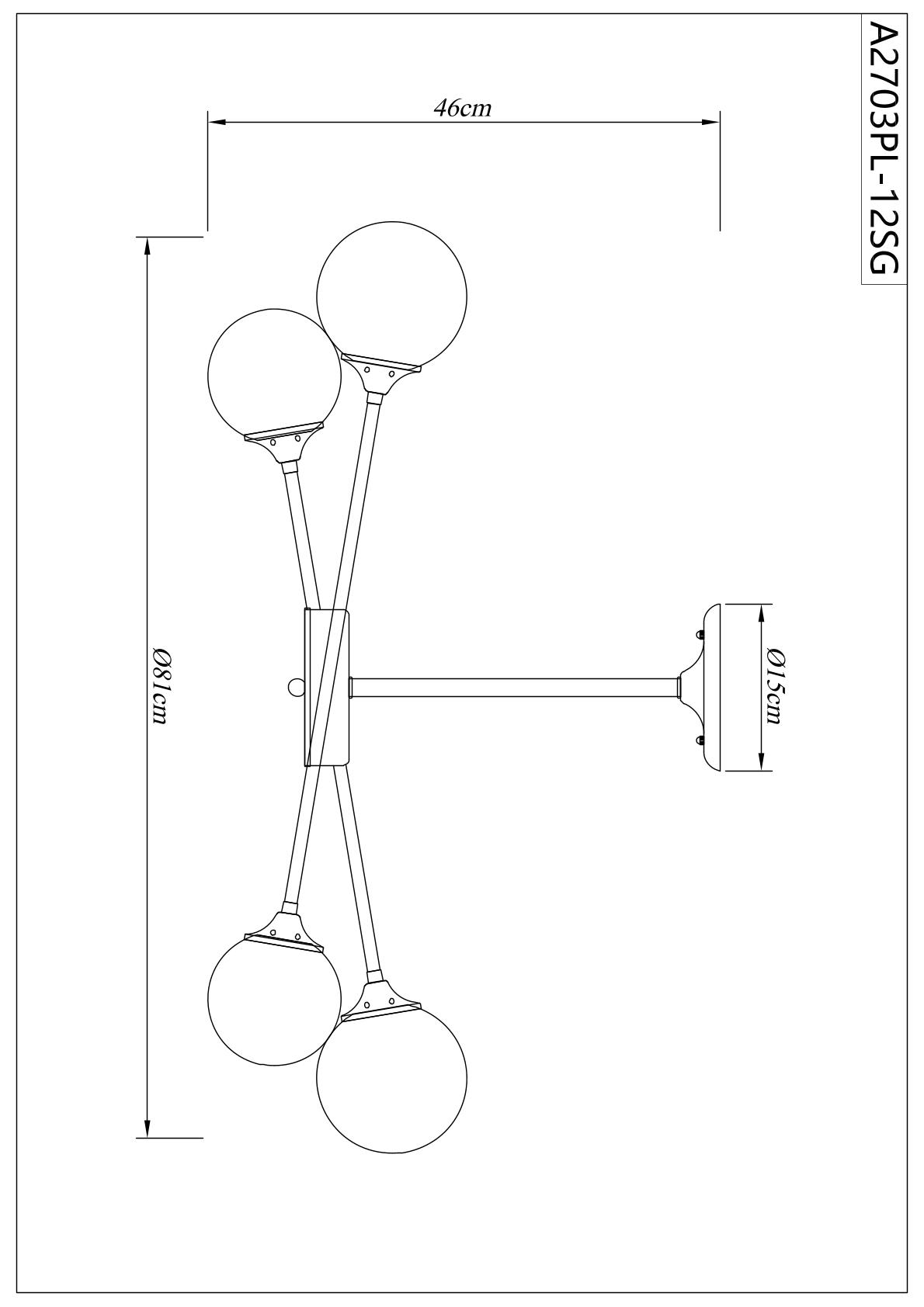 Люстра Arte Lamp A2703PL-12SG серии MARCO. Подчеркнет стиль помещения. Высота 46 cm. Диаметр 81 cm Параметры пылевлагозащиты IP — 20. Плафон стеклянный белого цвета, а материал/цвет арматуры металл/золотистый. Использует лампу с цоколем E14. Площадь освещения охватывает 24 m². Идеально подходит для гостиной. Страна происхождения бренда — ИТАЛИЯ. Вес с упаковкой 4.5 kg. Характеристики: Материал: металл/стекло. Мощность лампы: 60W. Напряжение: 220V. Патрон: E14. Стиль лампы: Модерн. Количество патронов: 12. Лампы в комплекте: Нет.