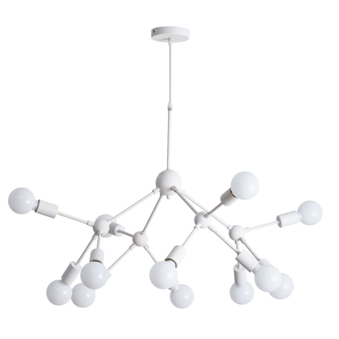 Люстра Arte Lamp A3064SP-12WH серии Matrix. Подчеркнет стиль помещения. Высота 52 cm. Параметры пылевлагозащиты IP — 20. Материал/цвет арматуры металл/белый. Использует 12 ламп с цоколем E27. Страна происхождения бренда — Италия. Вес с упаковкой 2.2 kg. Характеристики: Мощность лампы: 40W. Напряжение: 220V. Патрон: E27. Стиль лампы: Хай-тек. Количество патронов: 12. Лампы в комплекте: Нет. Крепеж: монтажная пластина.
