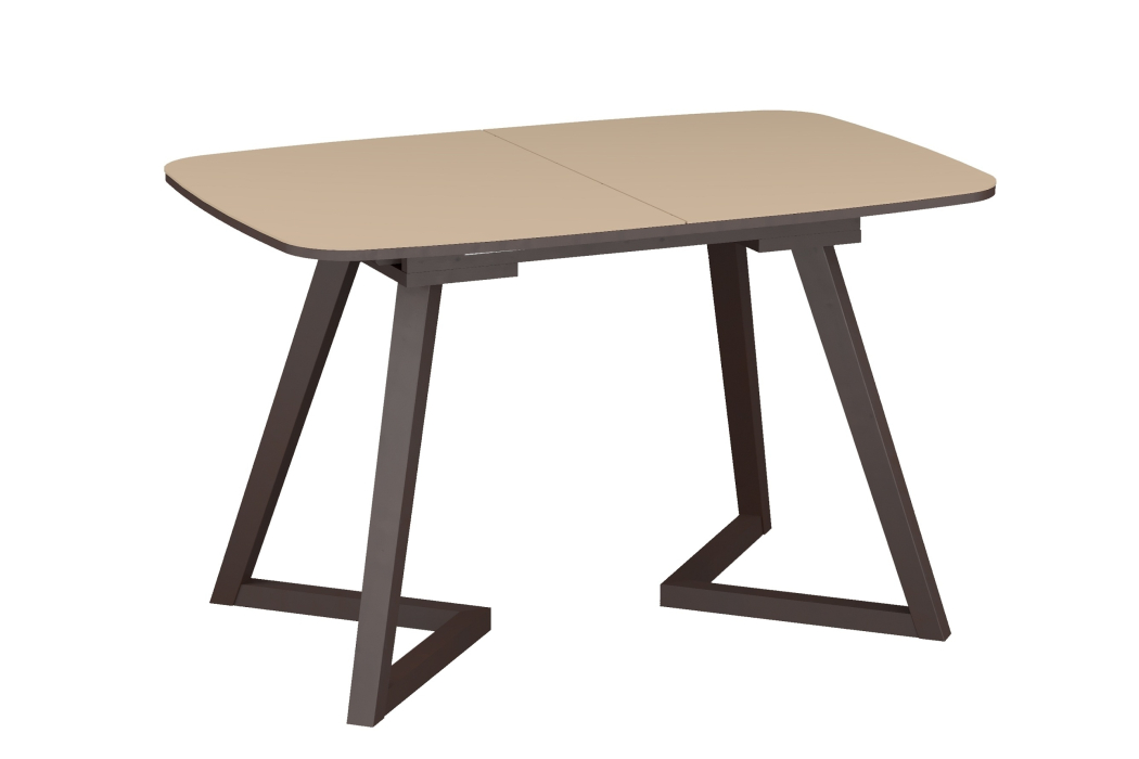 Ультрамодная форма основания стола сочетается со столешницей современной классической формы, делает его необычным и подходящим для интерьера кухни и гостиной. Размеры: 1250(1630)*770*800 мм. Механизм синхронного раздвижения. Столешница - МДФ и закаленное стекло. Царги - ЛДСП, ножки - бук.