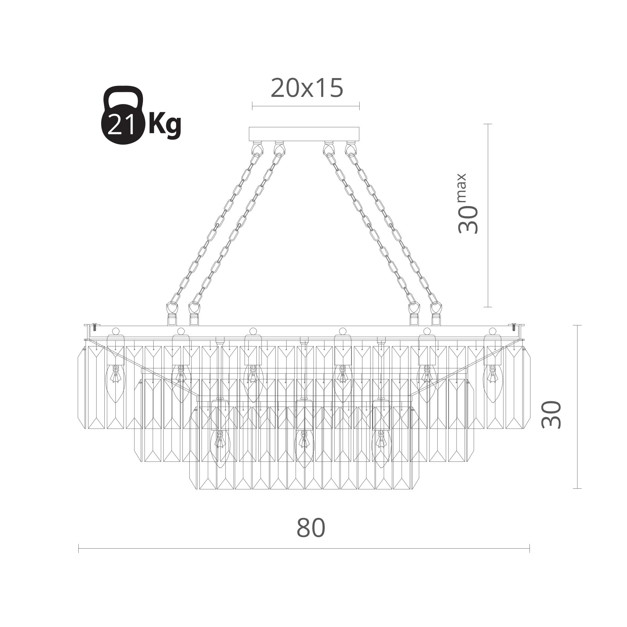 Люстра Divinare серии Nova. Освежит ваш интерьер. Размеры 80x50x30 cm. Параметры пылевлагозащиты IP — 20. Форма прямоугольная. Плафон хрустальный прозрачный. Использует 15 ламп с цоколем E14. Идеально подходит для гостиной, для прихожей, для офиса, для спальни. Страна происхождения бренда — Италия. Вес с упаковкой 22 kg. Характеристики: Материал: металл/хрусталь. Мощность лампы: 40W. Напряжение: 220V. Патрон: E14. Стиль лампы: Современный. Количество патронов: 15. Лампы в комплекте: Нет. Крепеж: монтажная пластина.
