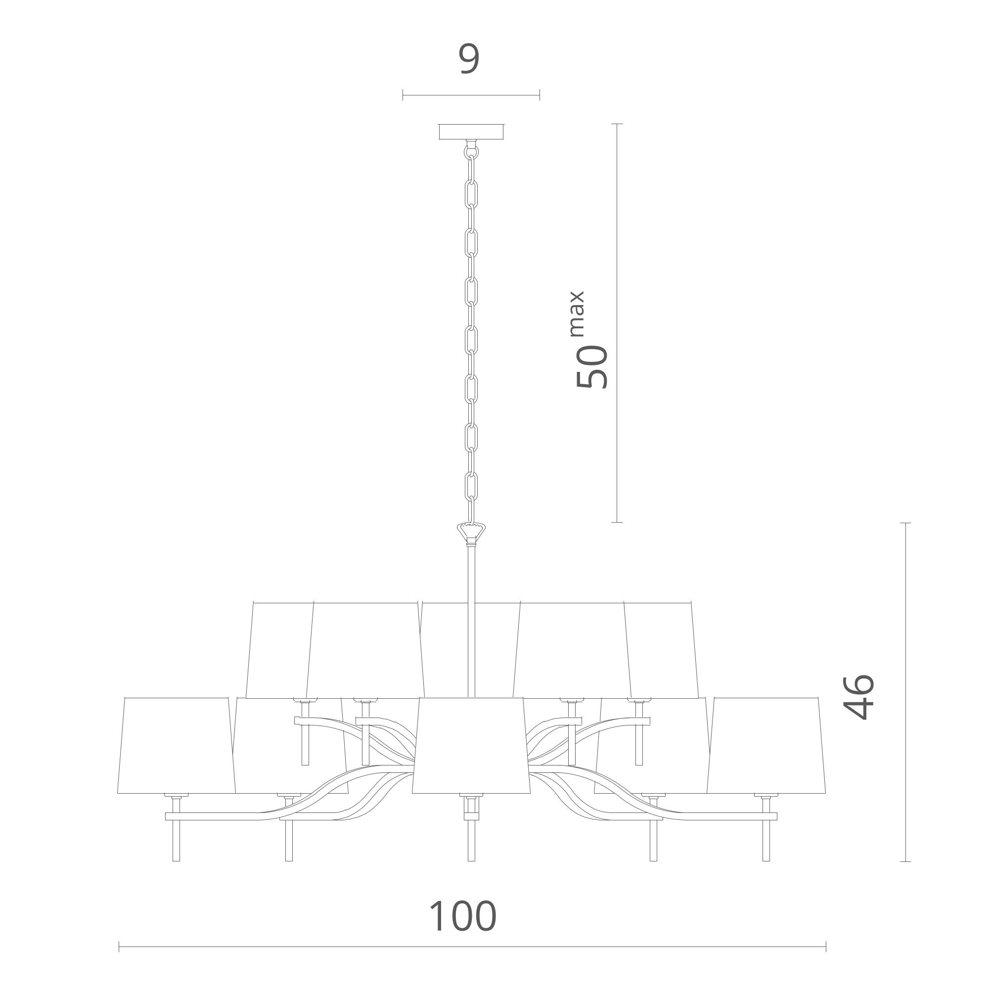 Люстра Divinare 1341/02 LM-10 серии Soprano в современном стиле. Подчеркнет стиль помещения. Размеры 100x100x46 cm. Параметры пылевлагозащиты IP — 20. Форма конусная. Плафон текстильный белого цвета, а материал/цвет арматуры сталь/хром. Использует 10 ламп с цоколем E14. Идеально подходит для гостиной. Страна происхождения бренда — Италия. Вес с упаковкой 10 kg. Характеристики: Материал: металл/ткань. Мощность лампы: 40W. Напряжение: 220V. Патрон: E14. Стиль лампы: Современный. Количество патронов: 10. Лампы в комплекте: Нет. Крепеж: монтажная пластина.
