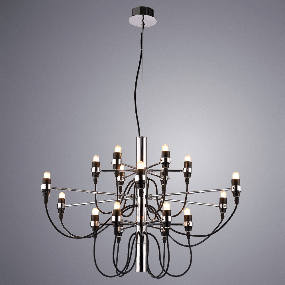 Люстра Divinare 8030/02 LM-18 серии Molto в стиле лофт. Подчеркнет стиль помещения. Размеры 60x60x45 cm. Параметры пылевлагозащиты IP — 20. Форма изогнутая. Материал/цвет арматуры металл/хром. Использует 18 ламп с цоколем E14. Идеально подходит для гостиной. Страна происхождения бренда — Италия. Вес с упаковкой 3.7 kg. Характеристики: Мощность лампы: 15W. Напряжение: 220V. Патрон: E14. Стиль лампы: Лофт. Количество патронов: 18. Лампы в комплекте: Да. Световой поток: 2700 Лм. Цветовая температура: 2700К. Крепеж: на планке. Время работы: 1000 ч. Для натяжных потолков.