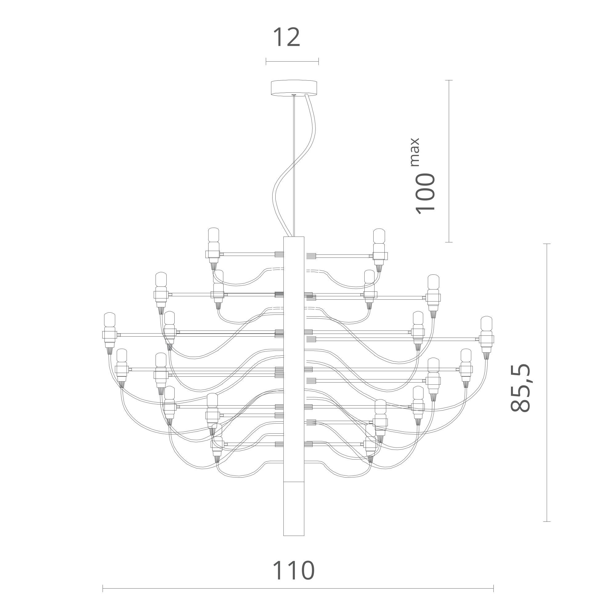 Люстра Divinare 8030/02 LM-50 серии MOLTO. Даст комфортный свет в комнате. Размеры 1.1x1.1x0.9 m. Диаметр 1.1 m Параметры пылевлагозащиты IP — 20. Форма изогнутая. Материал/цвет арматуры металл/хром. Использует 50 ламп с цоколем E14. Площадь освещения охватывает 30 m². Идеально подходит для гостиной. Страна происхождения бренда — ИТАЛИЯ. Вес с упаковкой 8.6 kg. Характеристики: Мощность лампы: 15W. Напряжение: 220V. Патрон: E14. Стиль лампы: Хай-тек. Количество патронов: 50. Лампы в комплекте: Да. Световой поток: 7500 Лм. Цветовая температура: 2700К. Крепеж: монтажная пластина. Время работы: 1000 ч.