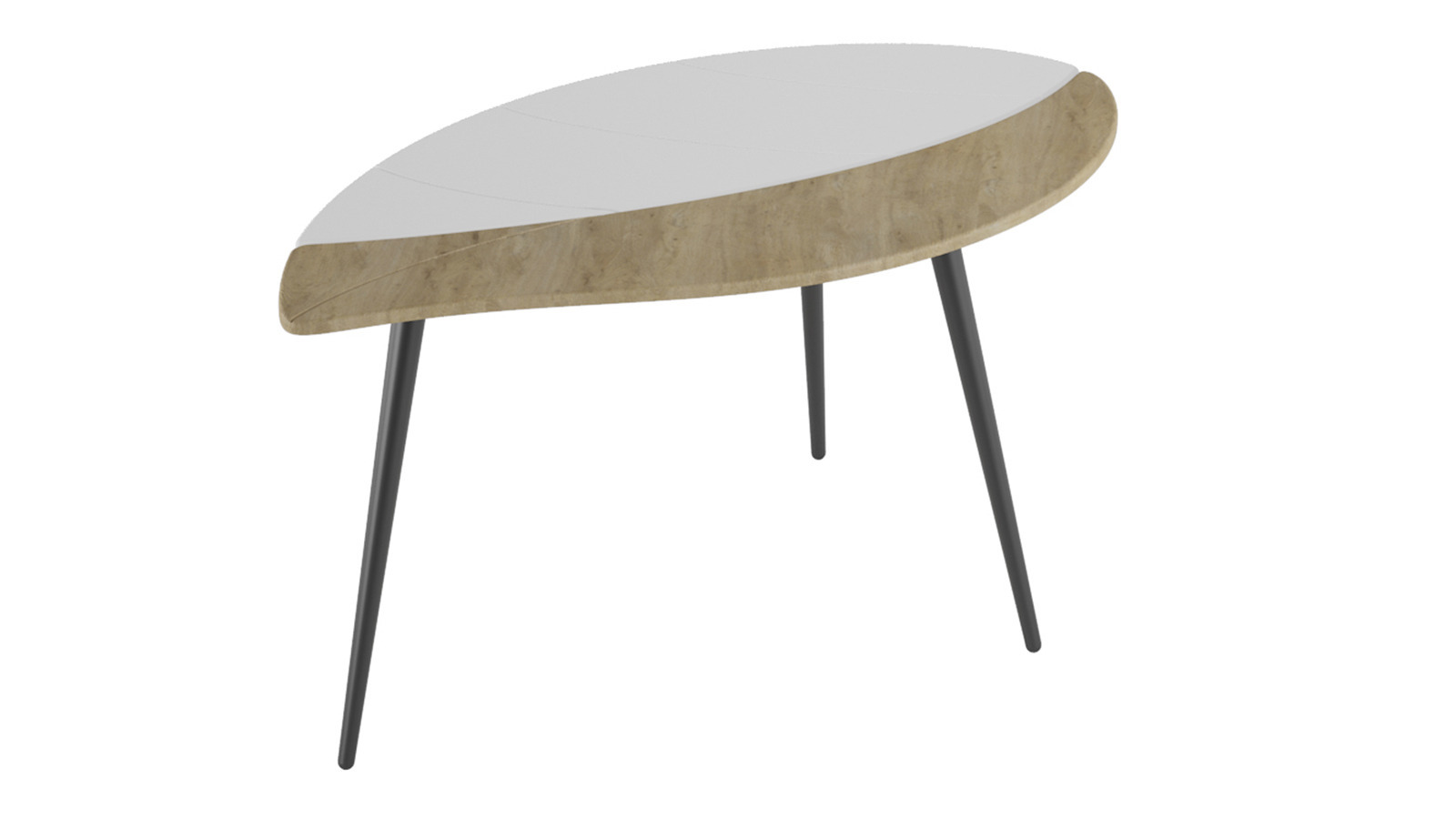 Журнальный стол вносит в интерьер гостиной комфорт и подчеркивает его эстетику. Зачастую подобный столик бывает главным столом в доме. Он помогает хозяевам встречать гостей, работать. Особенностью дизайнерского решения журнального стола "Лайм" является оригинальное сочетание фрезеровки столешницы в форме листа дерева и текстуры декоративного покрытия. Облегченные опоры черного цвета выполнены из дерева. Столик имеет компактные размеры: длина 900 мм, ширина 500 мм, высота 455 мм.