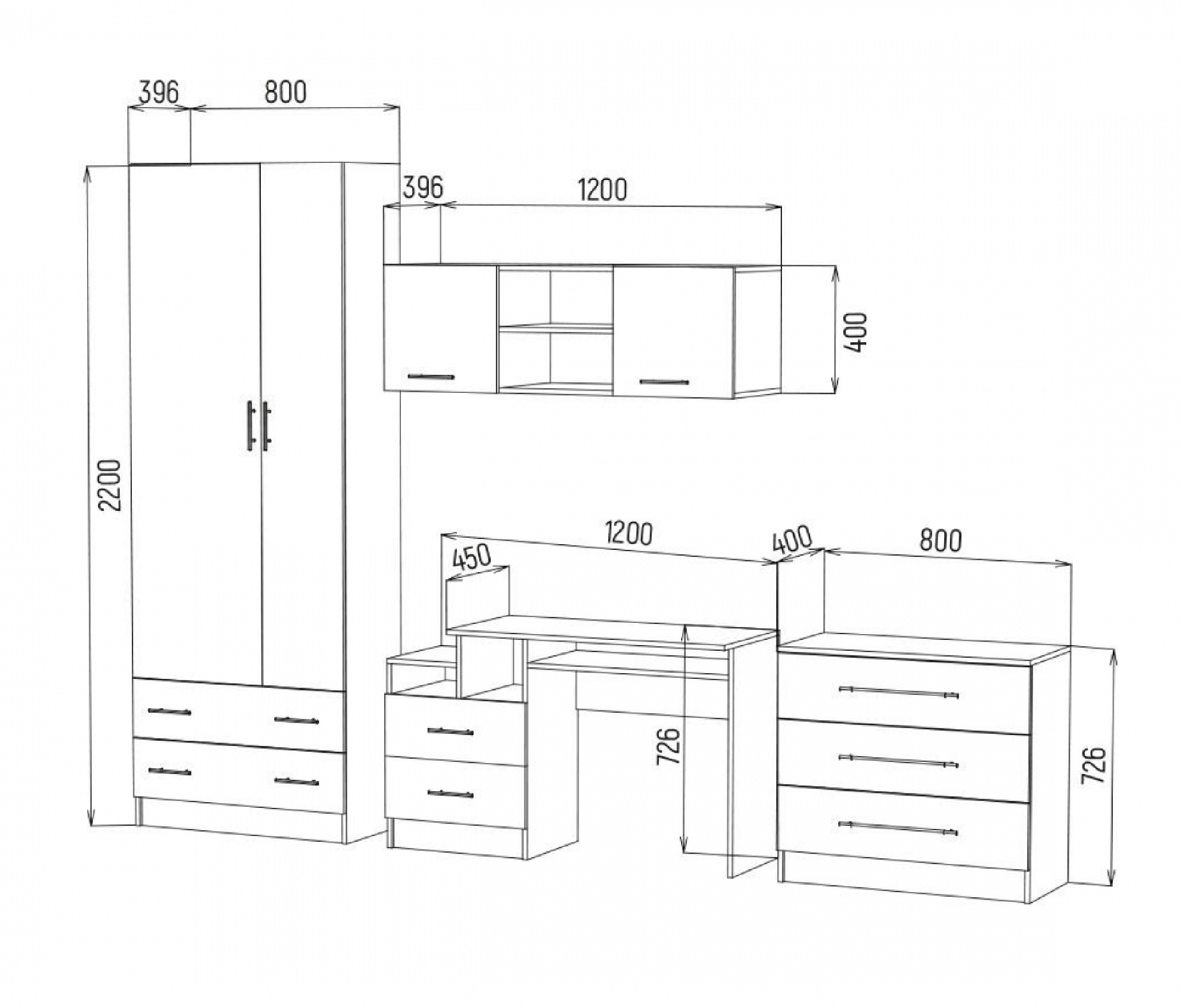 •комод 3 ящика (800х400х726).