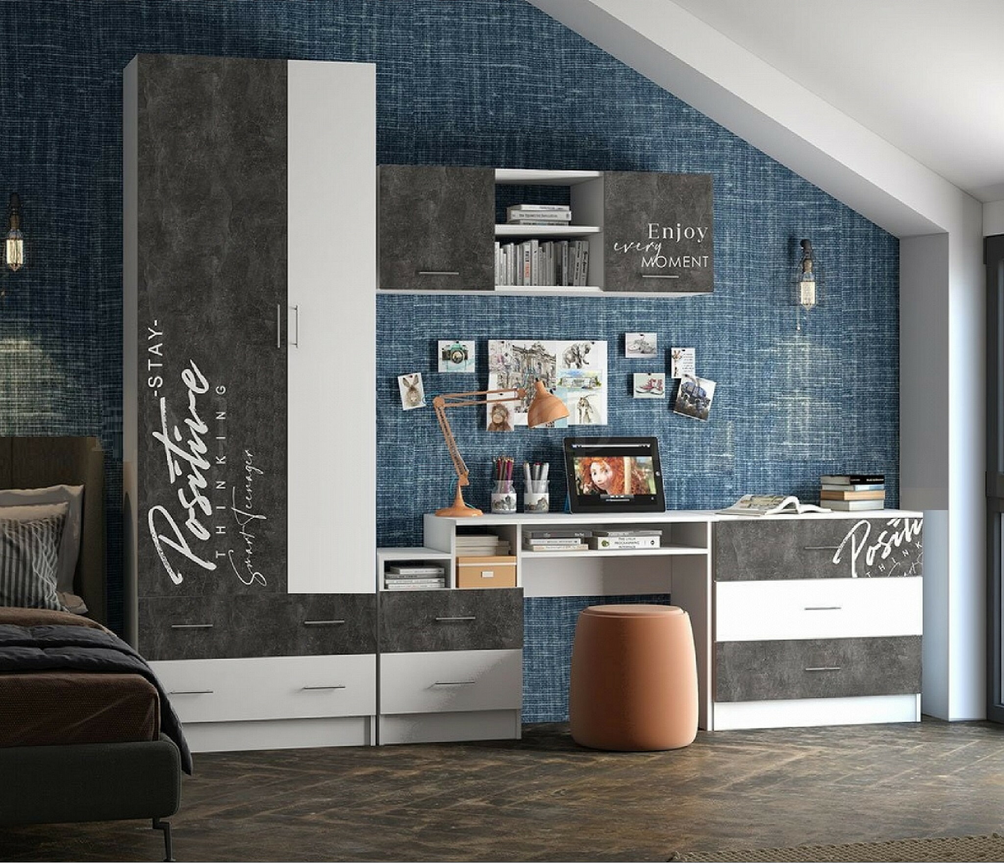 Модульная детская Вега Позитив — предназначена для детей подросткового возраста, она удобна, функциональна, качественна. Используются шариковые направляющие полного выдвижения, для удобства ручки у комода увеличенного размера - рейлинг 320. С такой мебелью можно с легкостью убирать свои принадлежности, различные аксессуары, диски, книги и другие предметы. В комнате с мебелью Вега NEW ребенок будет себя чувствовать уютно и комфортно.