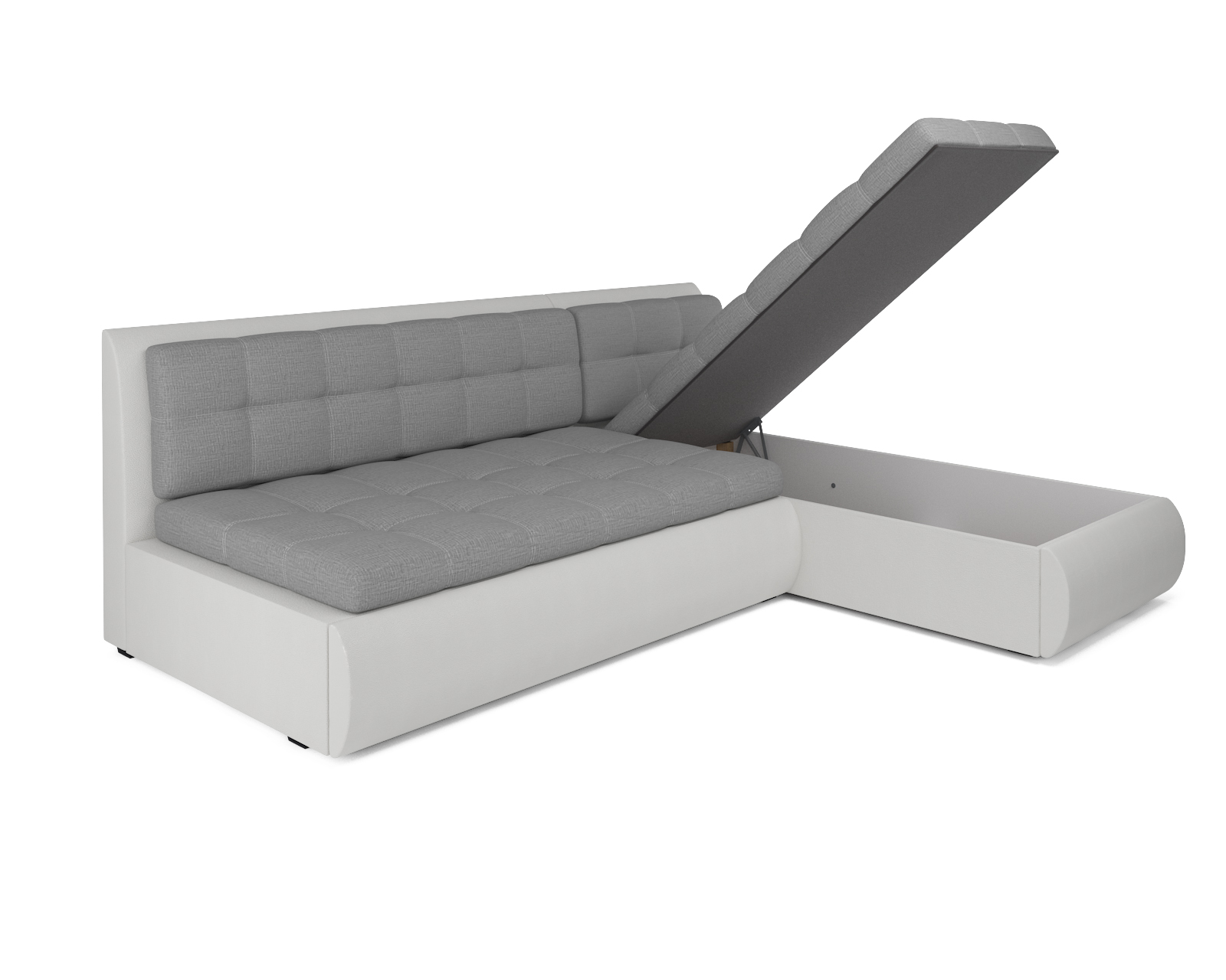 Удобство использования дивана «Кормак» дополняется ящиком для хранения, который расположен внутри угловой части. В него можно положить небольшие вещи или постельные принадлежности, сохраняя порядок и экономя пространство.