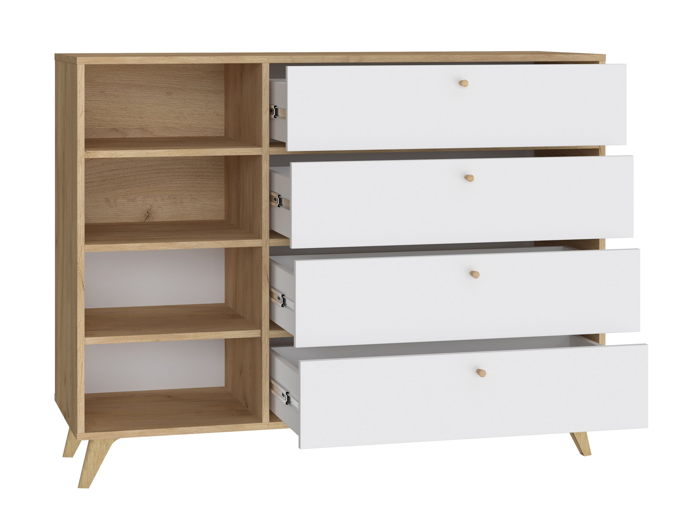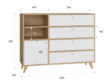 Комод ИР-12 из коллекции «Ирма» станет функциональным и стильным дополнением гостиной комнаты или спальни. Его дизайн как нельзя лучше подходит к лаконичным скандинавским интерьерам, а спокойная цветовая гамма гармонично дополнит обстановку. В ящиках используются телескопические направляющие полного выдвижения. Высота опор 120 мм.