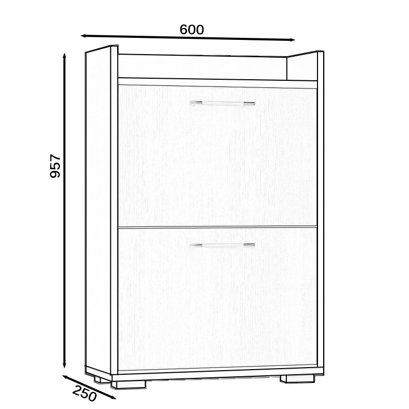 Данная модель представляет собой узкую тумбу с двумя закрытыми откидными дверками отделениями. Дверки обувницы оборудованы полочками, что увеличивает вместительность тумбы вдвое. Верхний горизонт тумбы ограничен с трёх сторон, и это позволяет использовать его, как открытую полочку. Глубина тумбы составляет 25 см., это даёт возможность меблировать даже самые небольшие прихожие. Корпус и фасады выполнены из ЛДСП 16 мм., края закромлены плёнкой ПВХ. Поставляется в разобранном виде, надёжно упакованным, в комплекте с фурнитурой и инструкцией по сборке.