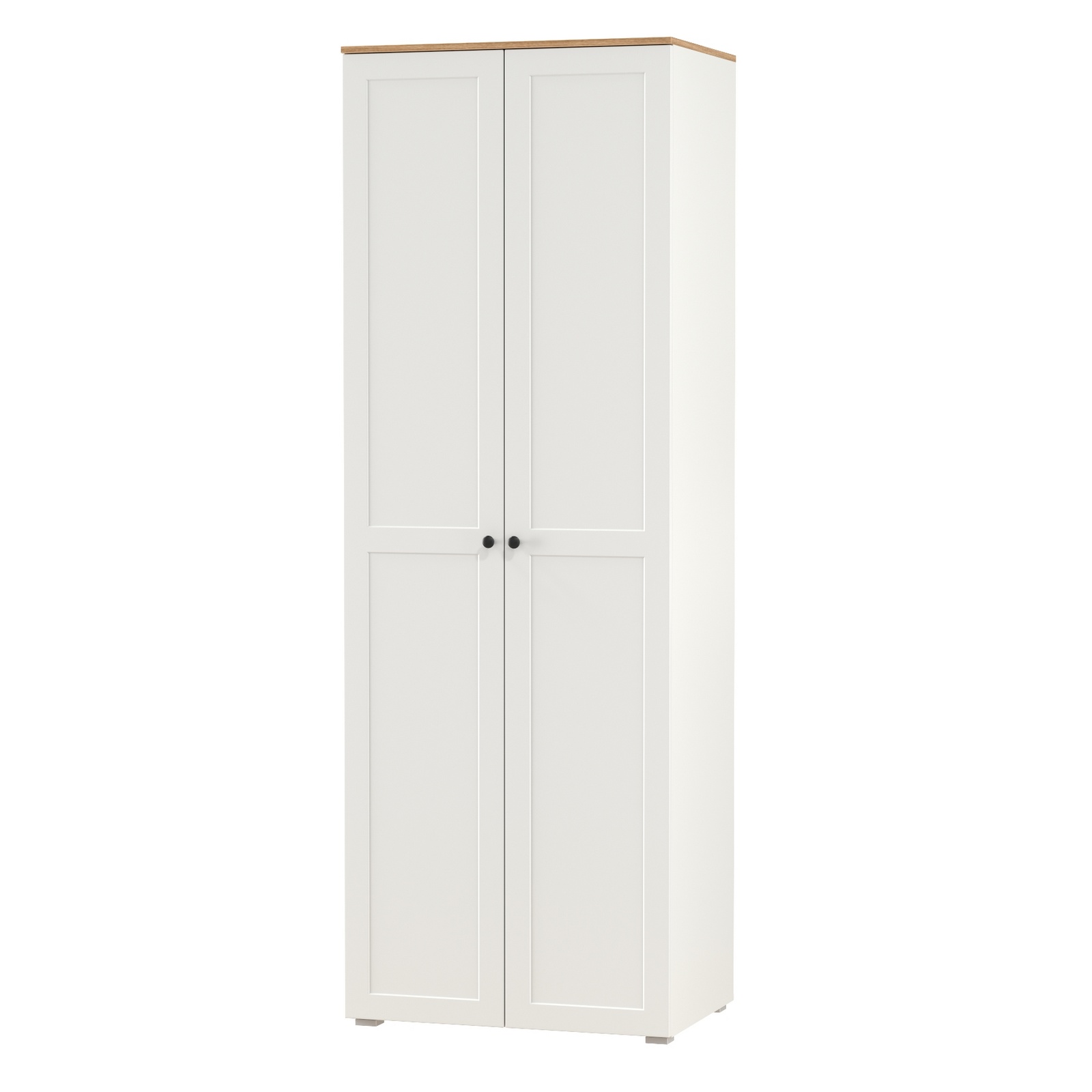 Двухстворчатый шкаф, оснащённый двумя полками и штангой для вешалок. длина 800 высота 2203 глубина 600