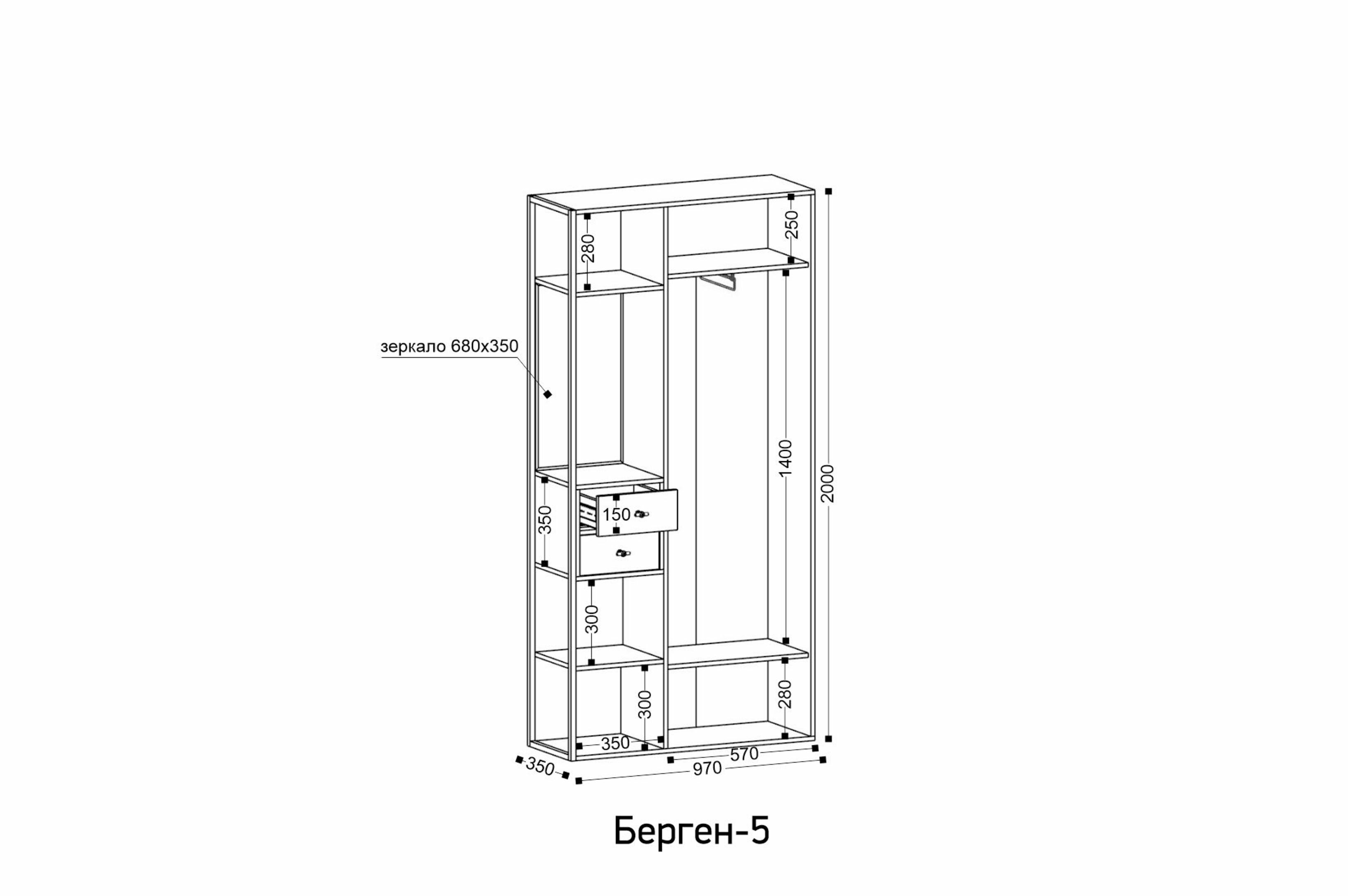 Размеры: ш – 950 мм, г – 350 мм, в – 2000 мм;