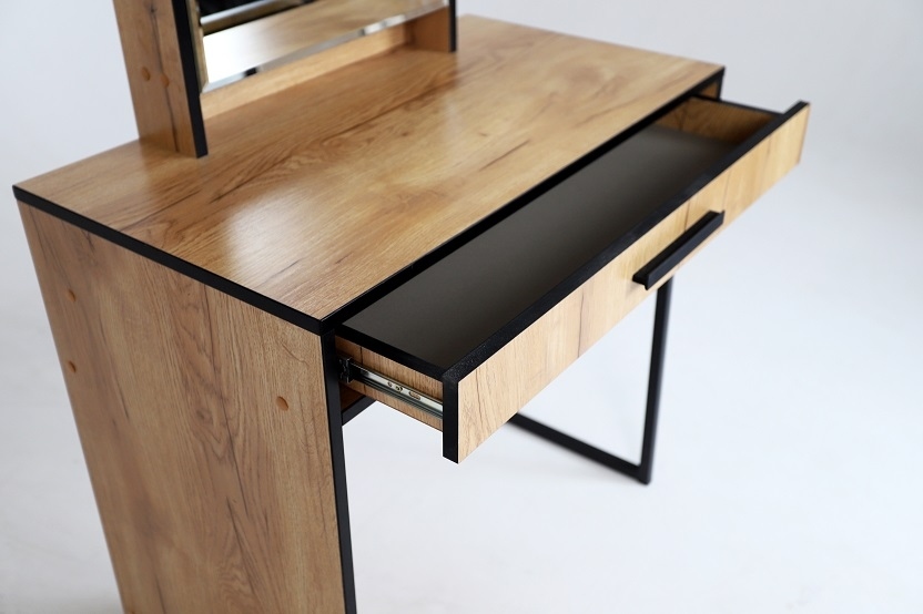 Трюмо Лофт 10 - Консоль, имеет выдвижной вместительный ящик и спрятанные за зеркалом полки.