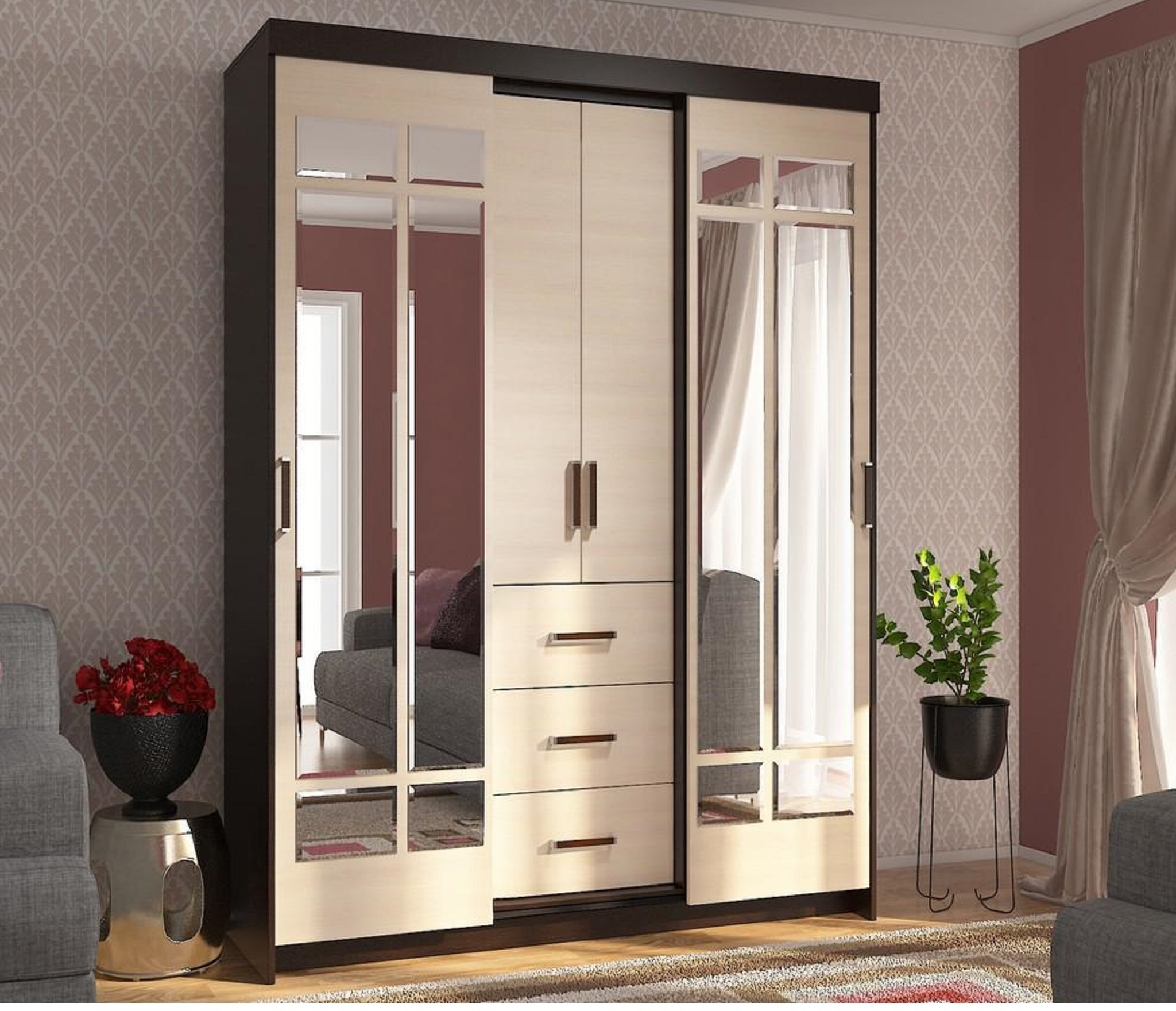 Шкаф-купе Комфорт 6М — для тех, кто любит красивую и функциональную мебель. Модель имеет оригинальный дизайн, изготовлена из ЛДСП, раздвижные двери украшены зеркалами. Благодаря интересному дизайну и эффектному сочетанию темного корпуса (Венге) и светлого фасада (Дуб молочный), этот вместительный шкаф станет настоящим украшением квартиры.
