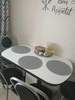 Обеденная группа Элегант/Цезарь состоит из стола В сложенном виде 690*110,в разложенном 690*1420 .Высота 750 мм.Для производства стола используется покрытие столешницы: высококачественный Пластик, опора из МДФ с покрытием пленки МДФ. Под столешницей предусмотрена декоративная юбка, которая позволяет скрыть механизм раздвижения стола. направляющие синхронного раздвижения, механизм вставки — «Бабочка»+ 4 стула,на металлическом каркасе,обивка высококачественная экокожа с простёжкой.