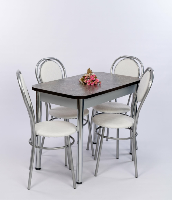 обеденная группа ПФ/Цезарь состоит из стола размер 58*100*75 и 4-х стульев,обивка Экокожа с прошивкой.Столешница стола 22 мм.