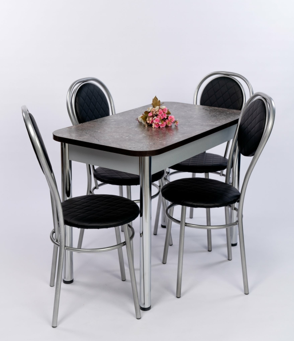 обеденная группа ПФ/Цезарь состоит из стола размер 58*100*75 и 4-х стульев,обивка Экокожа с прошивкой.Столешница стола 22 мм.