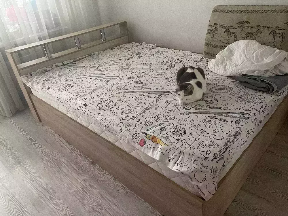 кровати - 144х217х78 см, спальное место - 1400х2000 мм, основание в комплекте (настил ДСП), матрас приобретается отдельно.