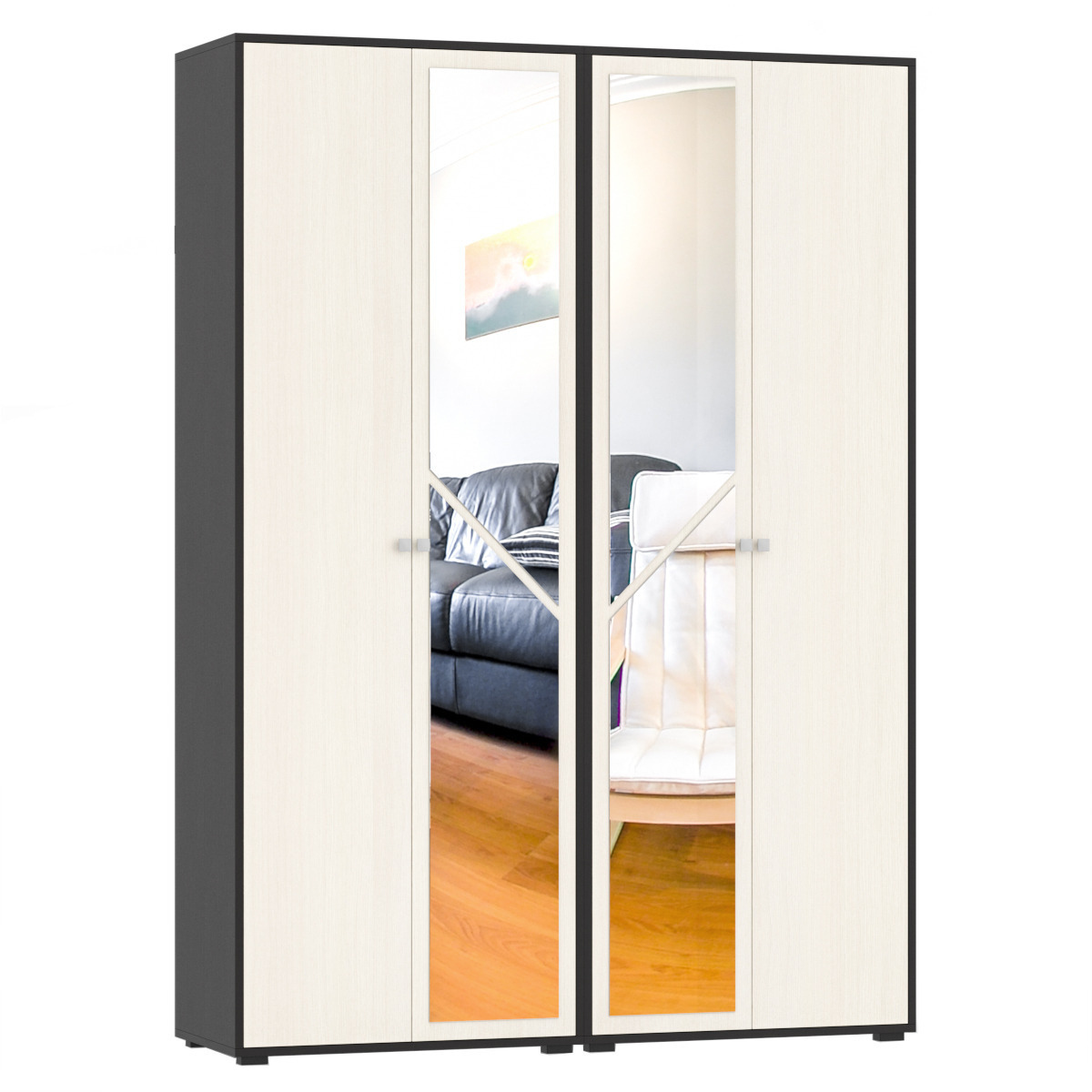 Широкий шкаф 4-х створчатый Камелия составлен из двух автономных шкафов, которые можно устанавливать отдельно, где Вам удобно! Одно отделение шкафа - для одежды на вешалках, со штангой и двумя полками, второе - для белья и вещей, с четырьмя полками. Центральные дверки шкафа Камелия украшены зеркалами во всю длину двери - дополнительный вклад в эстетику и комфорт спальни. Универсальная сборка шкафа 4-х створчатого Камелия позволяет легко изменять интерьер, без уменьшения декоративности. Фурнитура высоких стандартов. Корпус и фасады выполнены из ЛДСП, края закромлены плёнкой ПВХ. Поставляется в разобранном виде, надёжно упакованным, в комплекте с фурнитурой и инструкцией по сборке. Элемент из набора мебели Камелия.