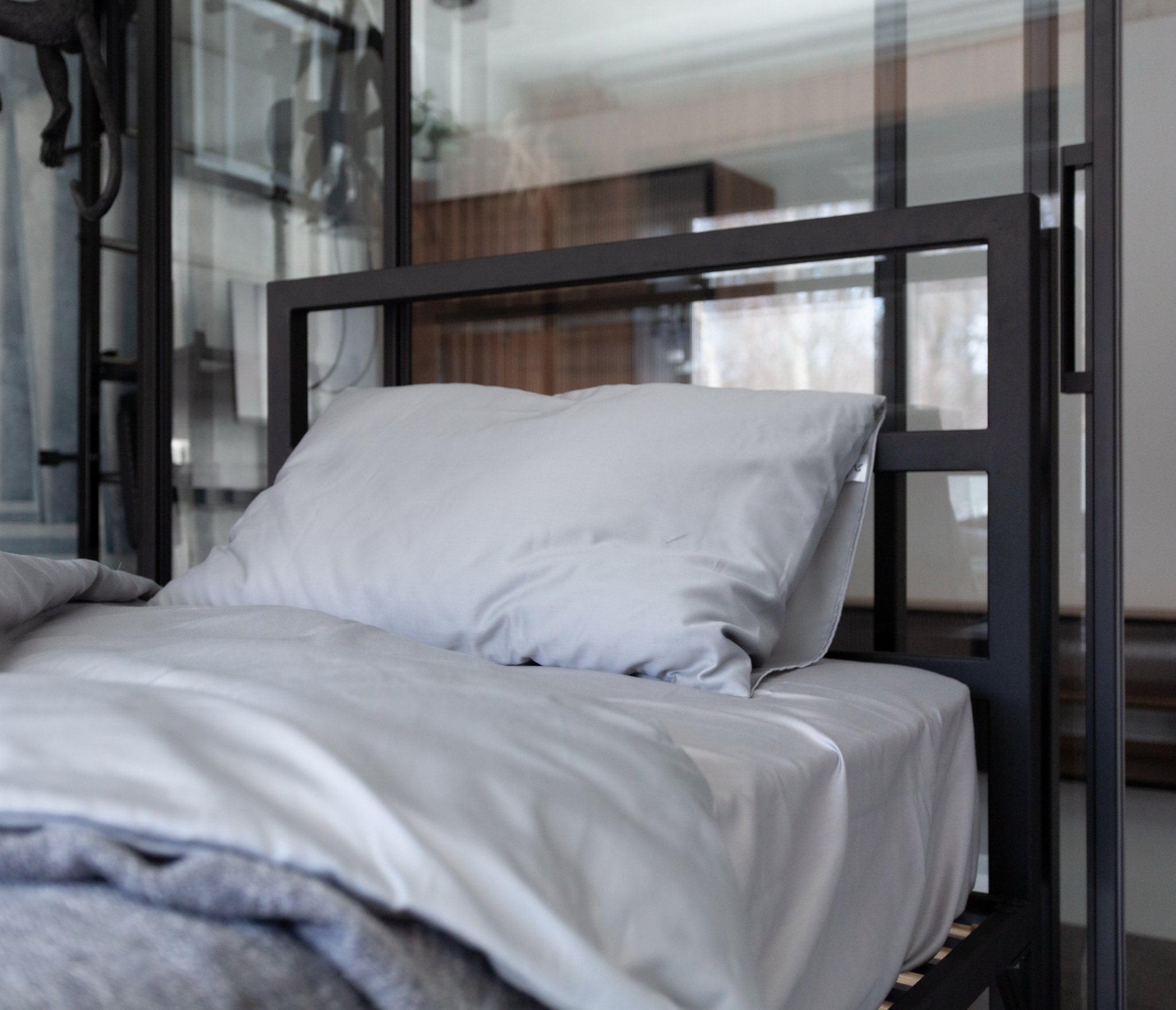 Благодаря отсутствию сплошного полотна изголовья и основания и его замены на горизонтальные перекладины модель выглядит изящно и совершенно не громоздко, благодаря чему может гармонично дополнить любой интерьер в современной стилистике.