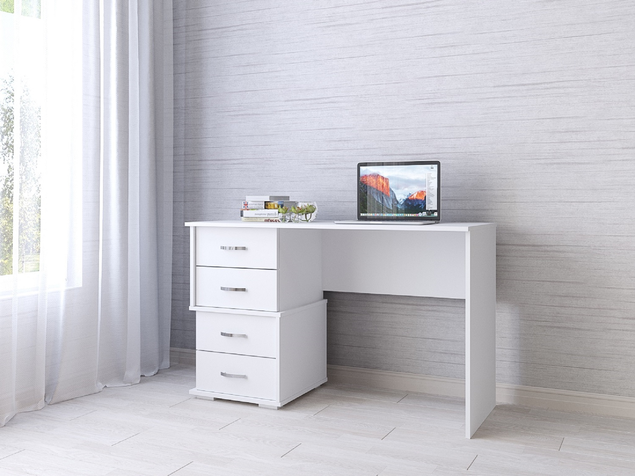 Ищете недорогой письменный стол необычной формы? Обратите внимание на модель Сити-2. Универсальный белый цвет и оригинальная конструкция тумбы с ящиками делают модель хитом на мебельном рынке. Вы сможете организовать не только функциональное и комфортное для ежедневной работы, но и визуально привлекательное рабочее место. Четыре выдвижных ящика оснащены роликовыми направляющими. Ручки пластиковые цвета "металлик".