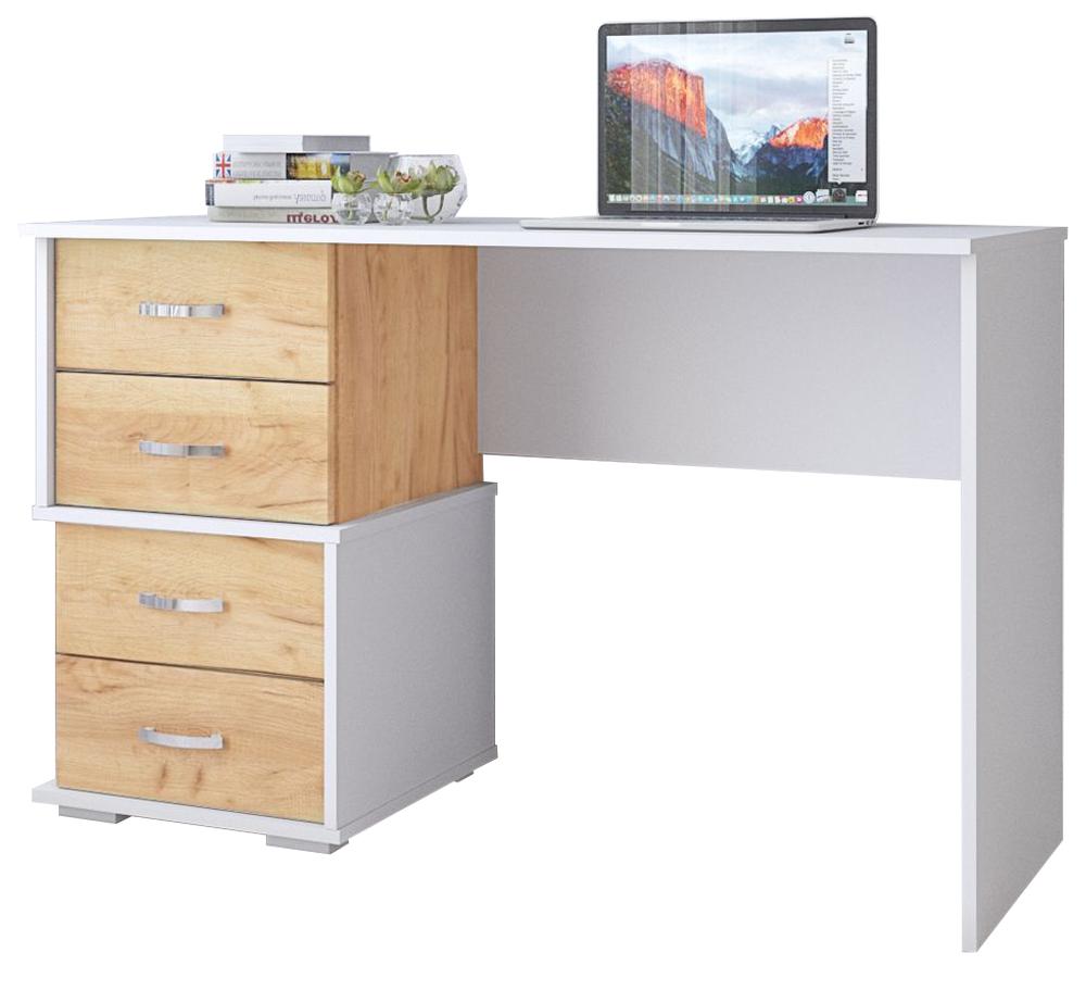 Ищете недорогой письменный стол необычной формы? Обратите внимание на модель Сити-2. Универсальный белый цвет и оригинальная конструкция тумбы с ящиками делают модель хитом на мебельном рынке. Вы сможете организовать не только функциональное и комфортное для ежедневной работы, но и визуально привлекательное рабочее место. Четыре выдвижных ящика оснащены роликовыми направляющими. Ручки пластиковые цвета "металлик".