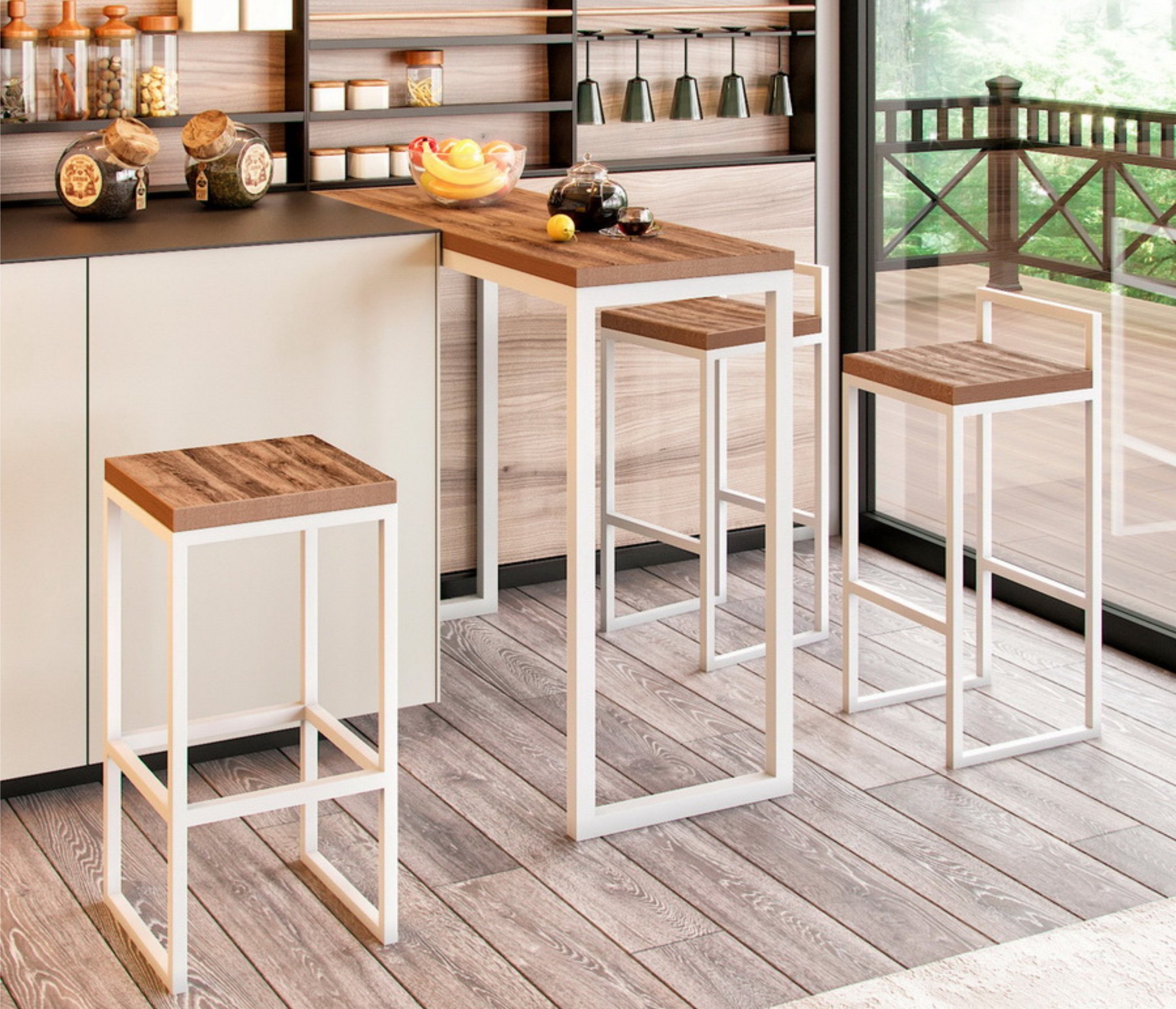 Каркас: профильная труба 40х40 мм.Прочное полимерно-порошковое покрытие черного, белого и серого цвета Дерево: массив сосны 20 мм, покрытое специальным маслом для мебели, цвета на выбор: бесцветный, белый, серый, махагон, орех, морёный дуб, черный, клён, черный графит, голубой графит, темное золото графит, золото графит.