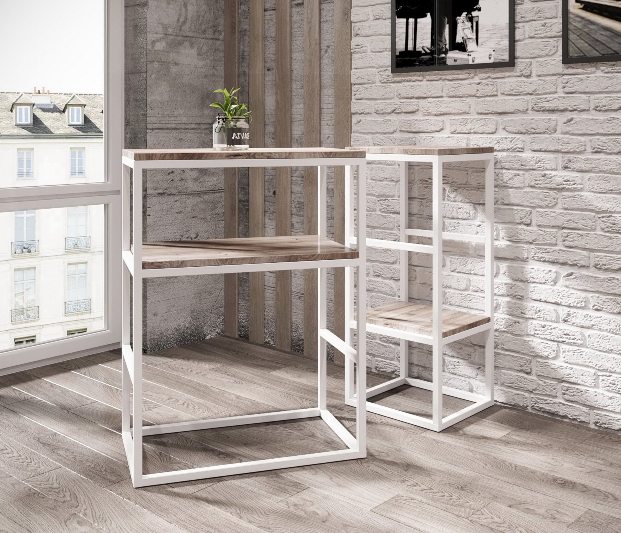 Каркас: профильная труба 20х20 мм.Прочное полимерно-порошковое покрытие черного, белого и серого цвета Дерево: массив сосны 20 мм, покрытое специальным маслом для мебели, цвета на выбор: бесцветный, белый, серый, махагон, орех, морёный дуб, черный, клён, черный графит, голубой графит, темное золото графит, золото графит.