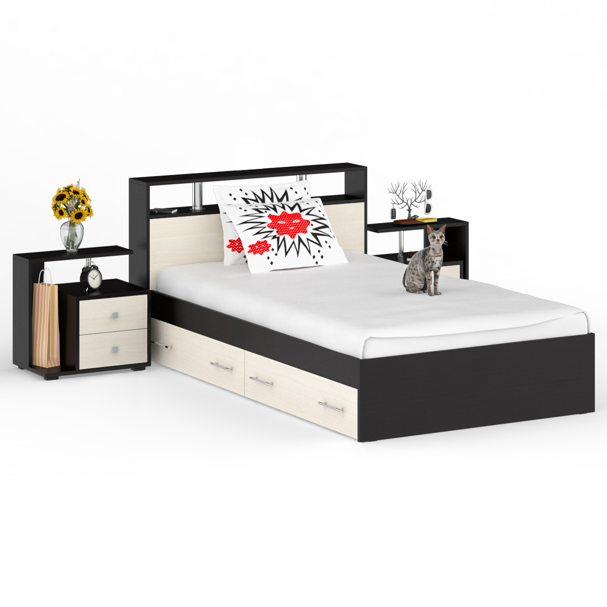 Отзывы о Столплит Кровать с ящиками Камелия 1200 с двумя прикроватными тумбами Венге/Лоредо