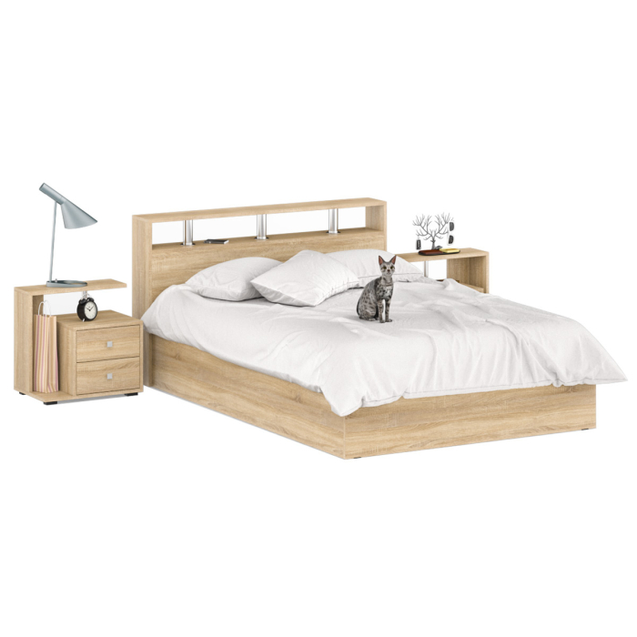 Отзывы о Столплит Кровать Камелия 1400 с двумя прикроватными тумбами Дуб Сонома