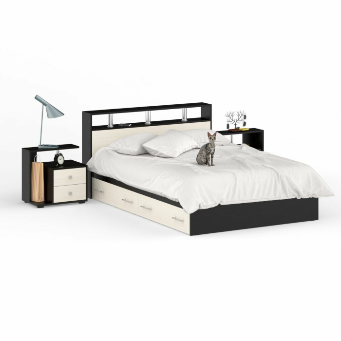 Отзывы о Столплит Кровать с ящиками Камелия 1400 с двумя прикроватными тумбами Венге/Лоредо